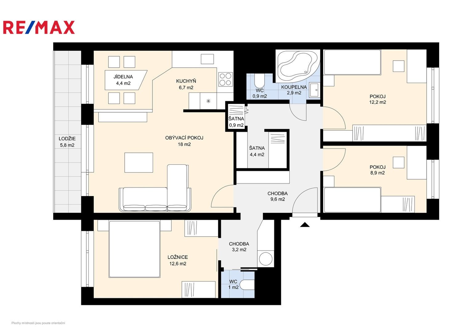 • Obývací pokoj a druhý pokoj: máte možnost dovybavit dle vlastních potřeb