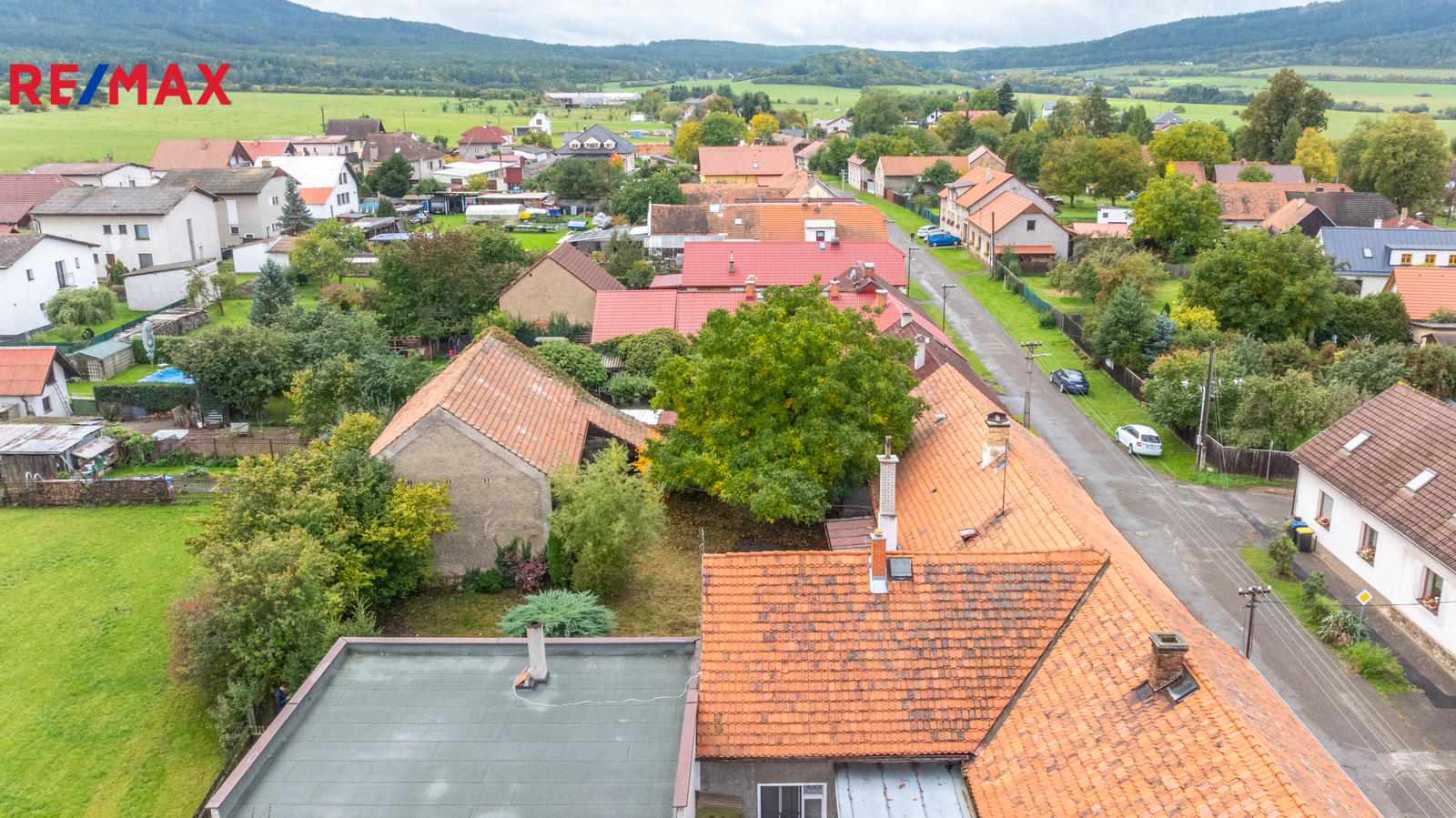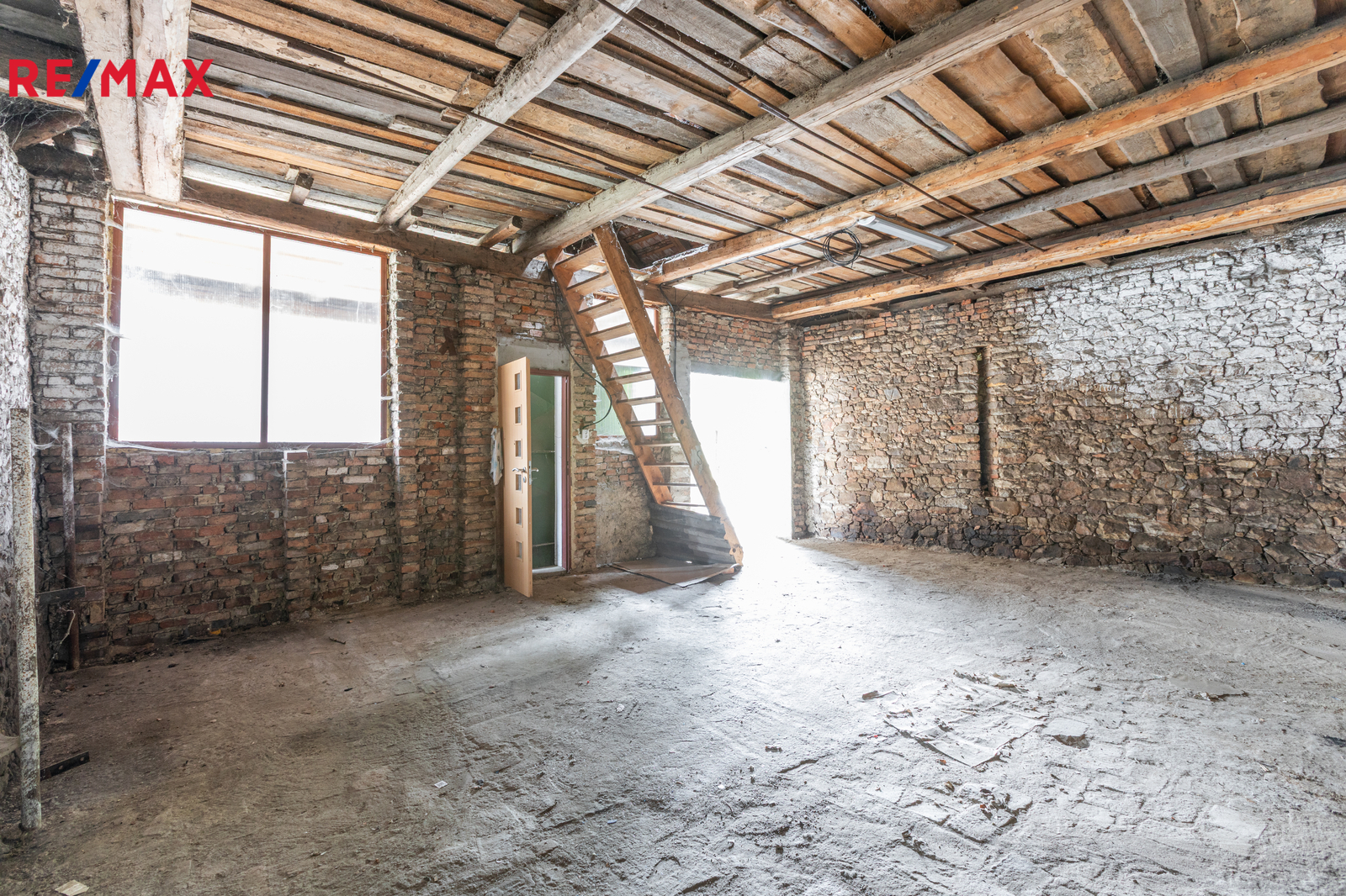 Dům je v dobrém stavu a lze v něm bydlet i po menší rekonstrukci, je ale také připraven na větší zásah a výrazné rozšíření jeho užitné plochy do podkroví. V tuto chvíli je rozdělen na byt 4+1 s vytápěním plynovým kotlem, novějšími okny a částečně rekonstruovanými rozvody, dále je k dispozici velká dílna se vstupem na půdu při průjezdu do dvora, garáž s dalším průjezdem do dvora a obrovská stodola 14,9 x 8,1 m.