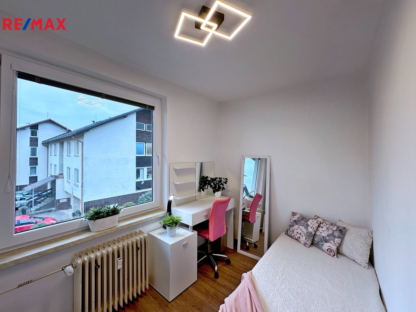 Dva světlé neprůchozí pokoje (8,04 m² a 8,55 m²), vhodné jako dětský pokoj, pracovna či pokoj pro hosty.