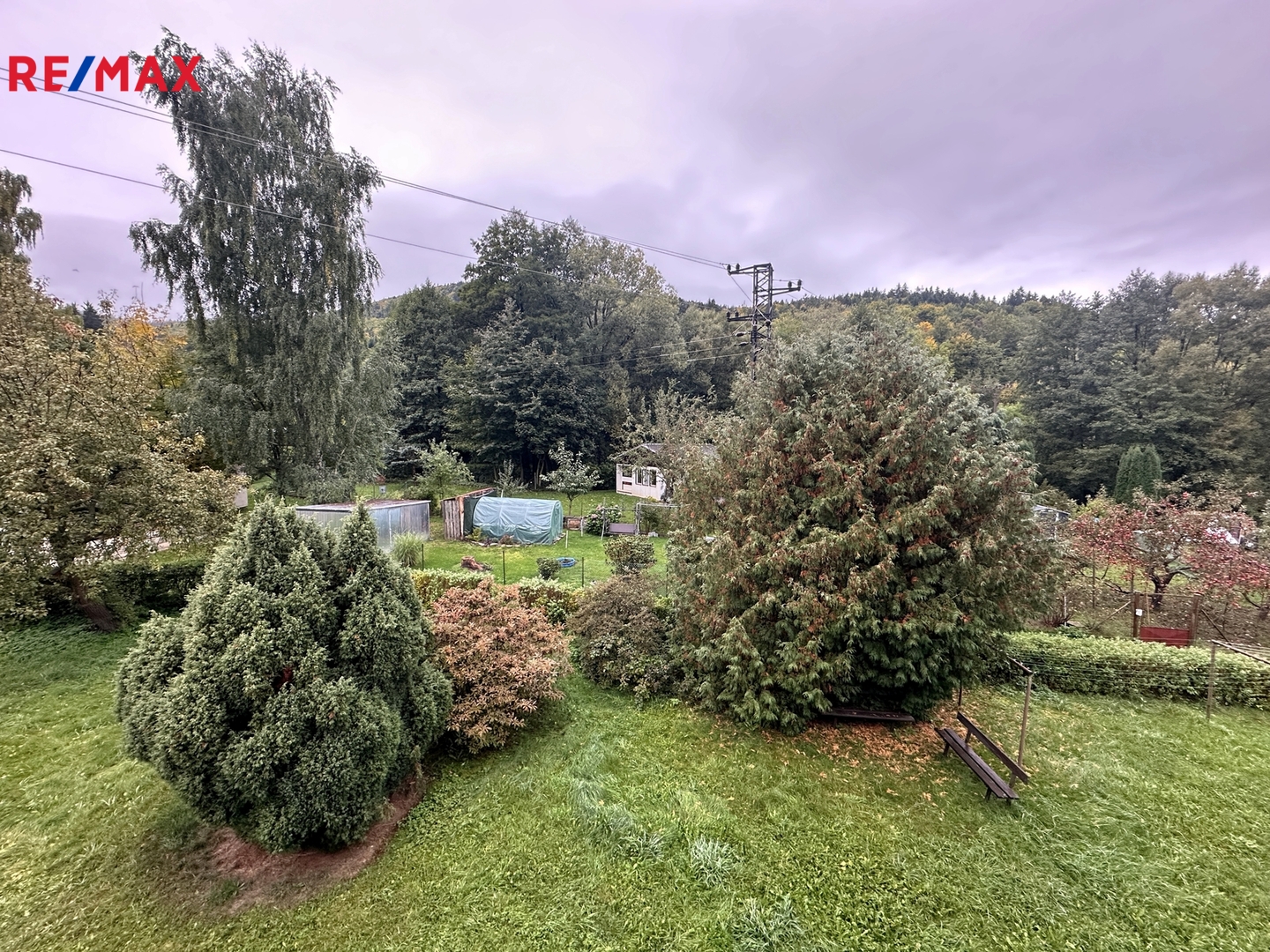 Z lodžie se otevírá malebný výhled na okolní krajinu, který doplňuje společná udržovaná zahrada – ideální místo pro letní posezení, relaxaci i dětské hry.