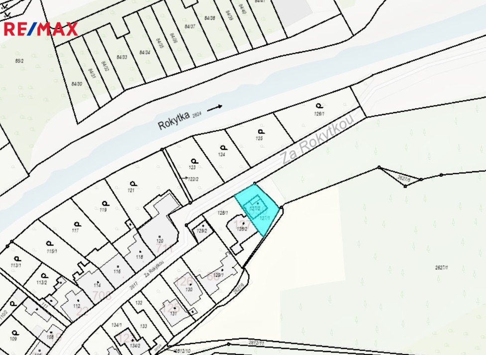 Adresa nemovitosti - Za Rokytkou 1650/32, 198 00 Praha 14 - Kyje.Předmětem prodeje jsou parcely č. 127/2 - zastavěná plocha a nádvoří o výměře 49 m2 a č. 127/1 - jiná plocha (zahrda) o výměře 146 m2.