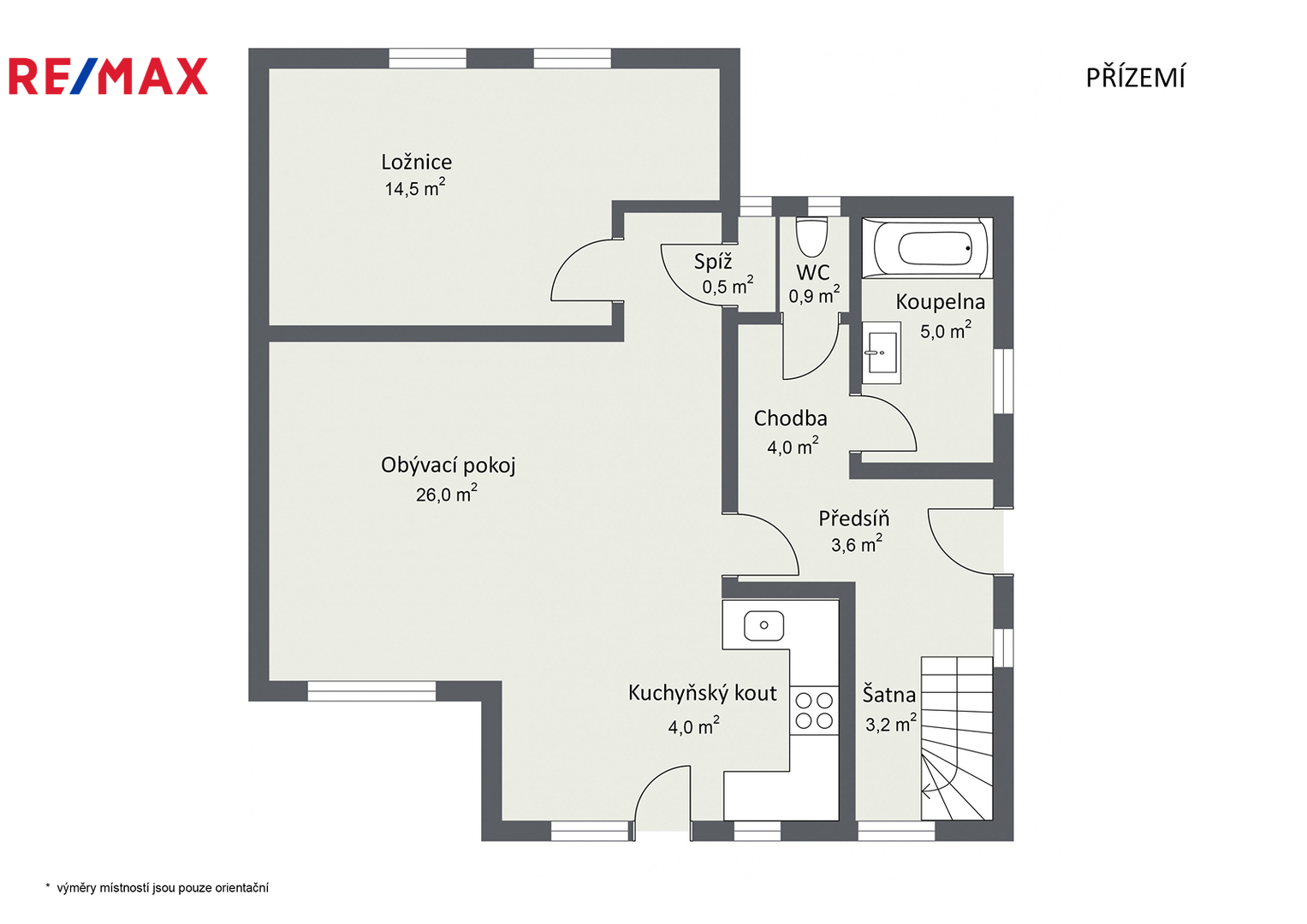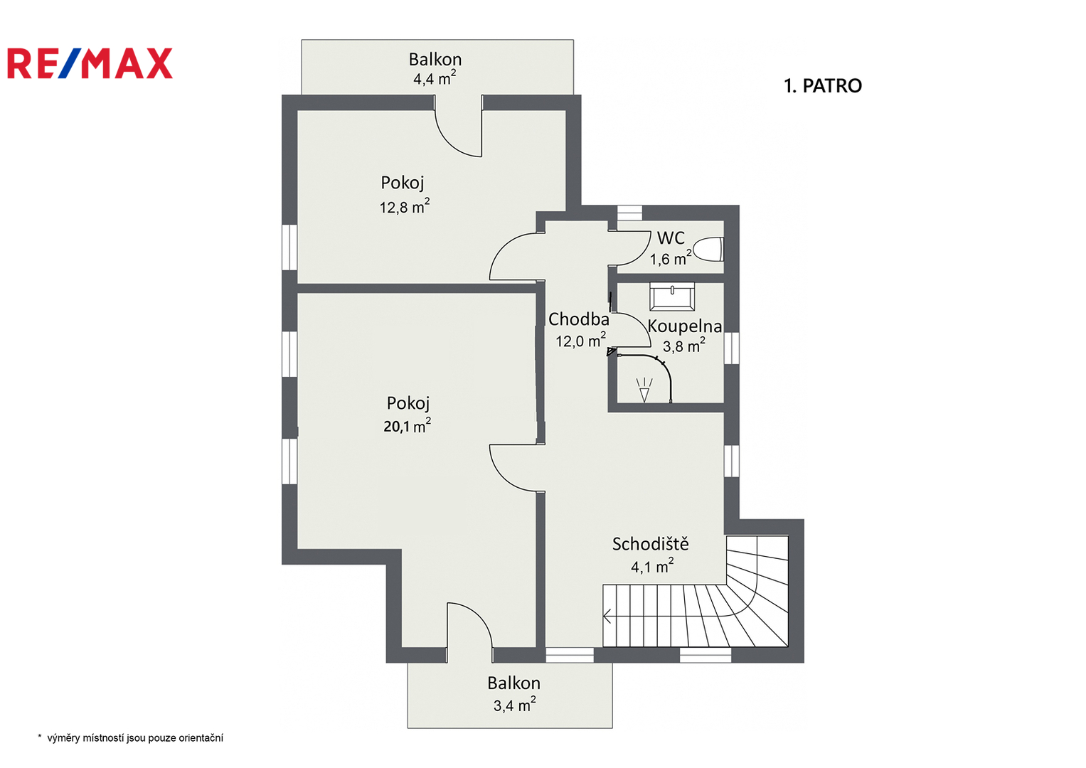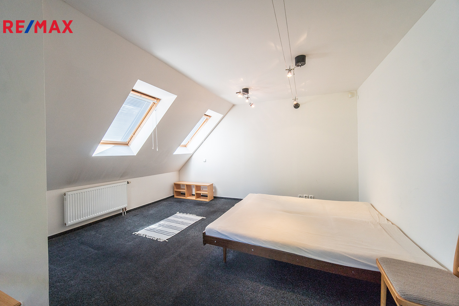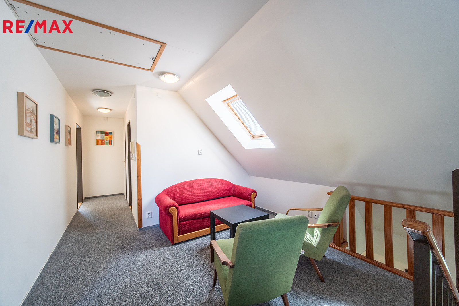 V přízemí se pak nachází další pokoj (ložnice/pracovna), koupelna, toaleta a praktická spíž. V 1.patře najdete další dva pokoje s toaletou a koupelnou. Z obou pokojů v 1.patře se dá vyjít na balkóny s výhledem do zahrady a okolní přírody. K dispozici je ještě velká půda využitelná jako úložný prostor a nebo se nabízí po úpravě možné využití jako další obytný prostor. Dům je částečně podsklepen a sklep se dá využít pro uskladnění ovoce a zeleniny.