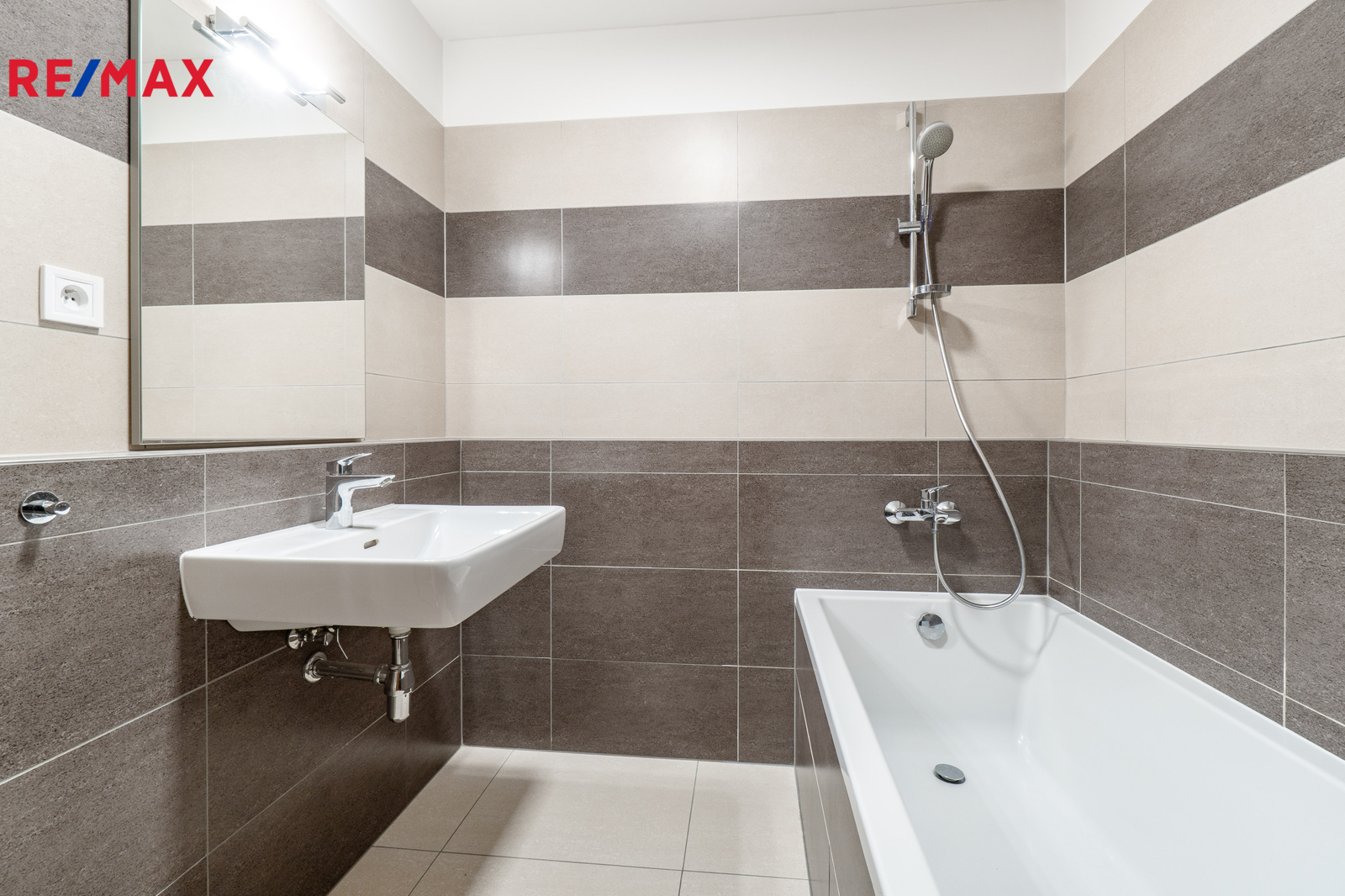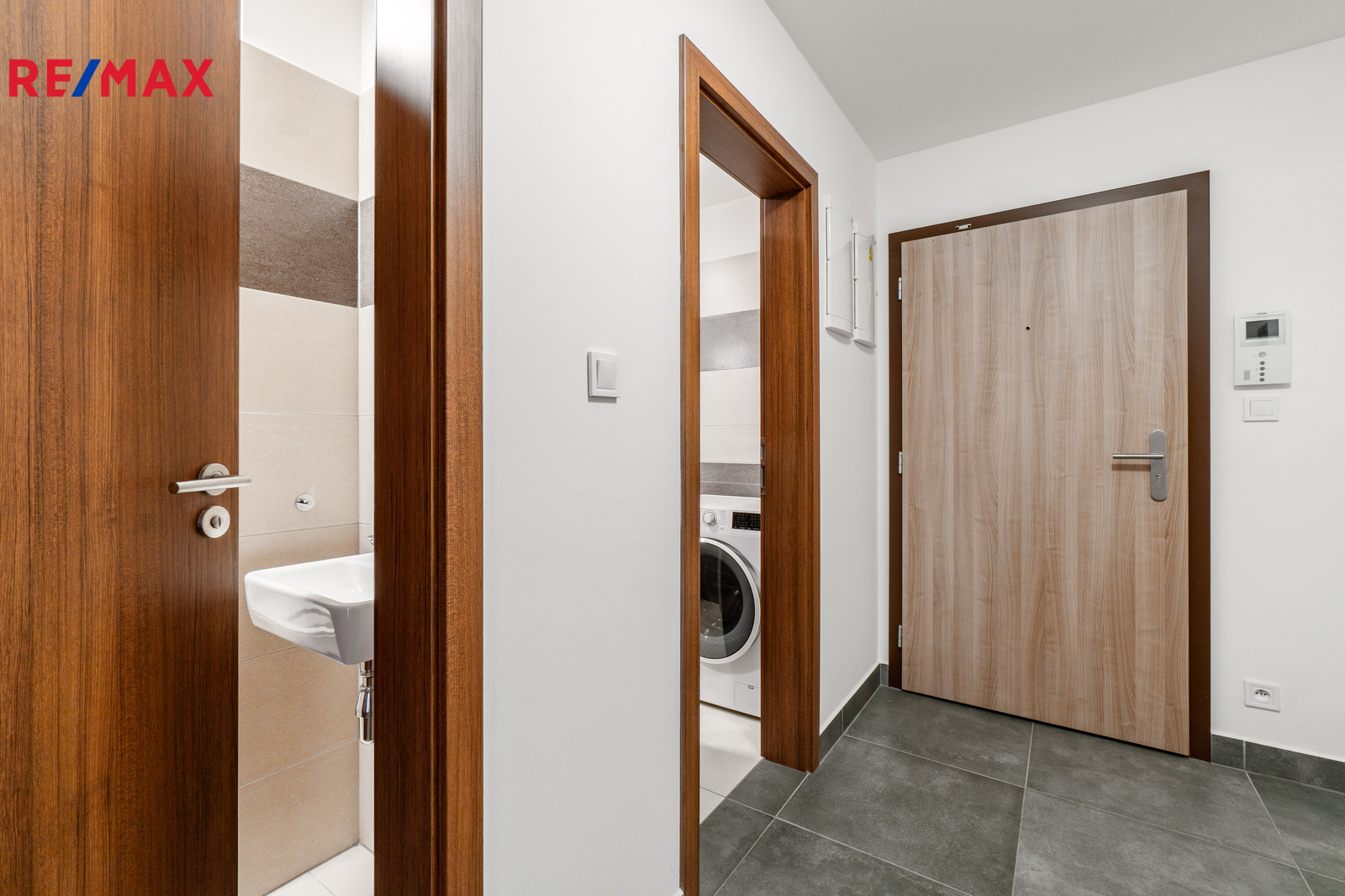 • Koupelna (4,9 m²) s pračkou kombinovanou se sušičkou