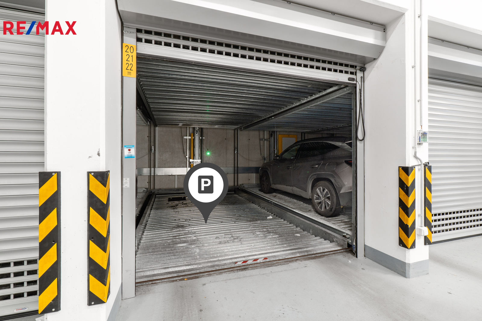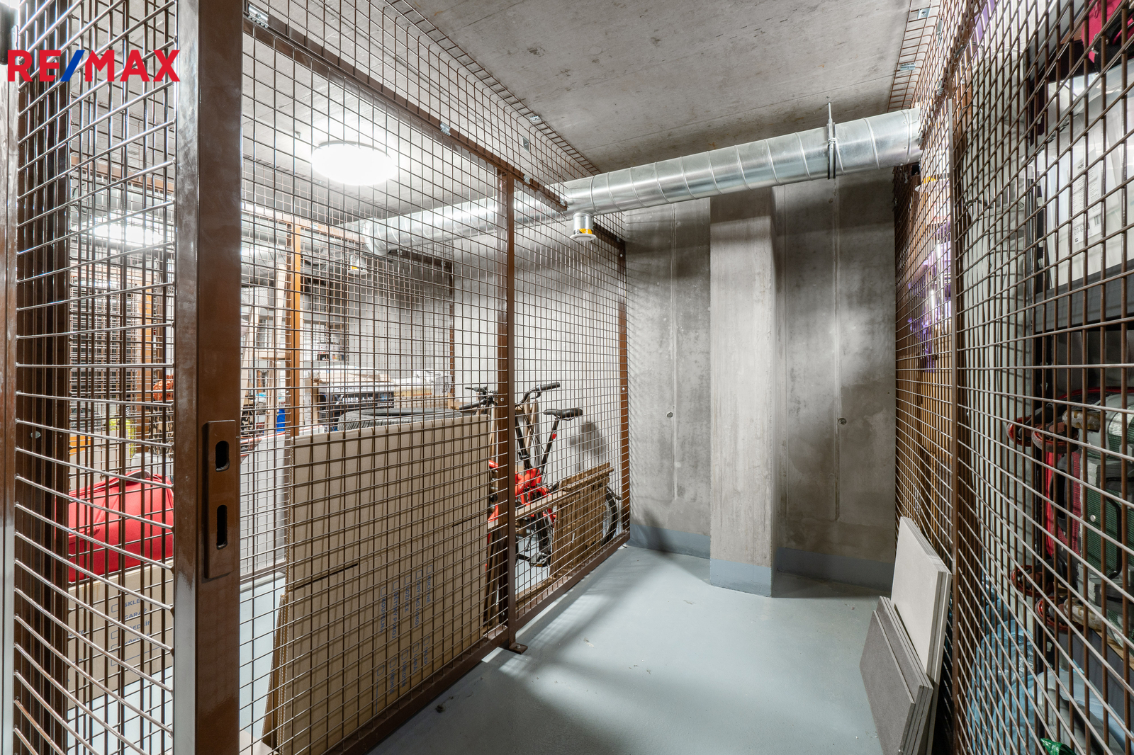 K bytu náleží sklepní kóje (3,9 m²) umístěná v 1. PP a garážové stání se systémem hydraulického parkování.