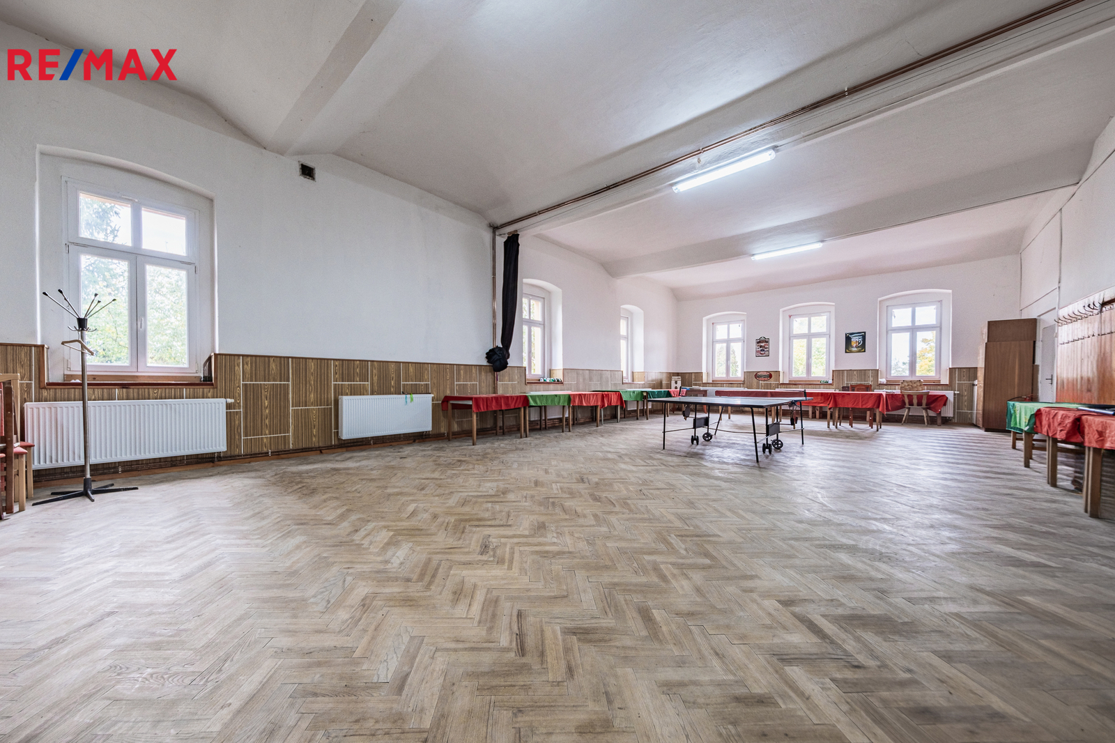 Nabízíme k prodeji zajímavý komerční objekt v obci Senkov (Zbrašín), nedaleko města Louny, který v současnosti slouží jako sídlo firmy s kancelářemi, hostinec s kuchyní a skladem, společenský sál pro kulturní akce jako např. pořádání svateb, divadelní/hudební představení, taneční zábava apod. a další skladové prostory.