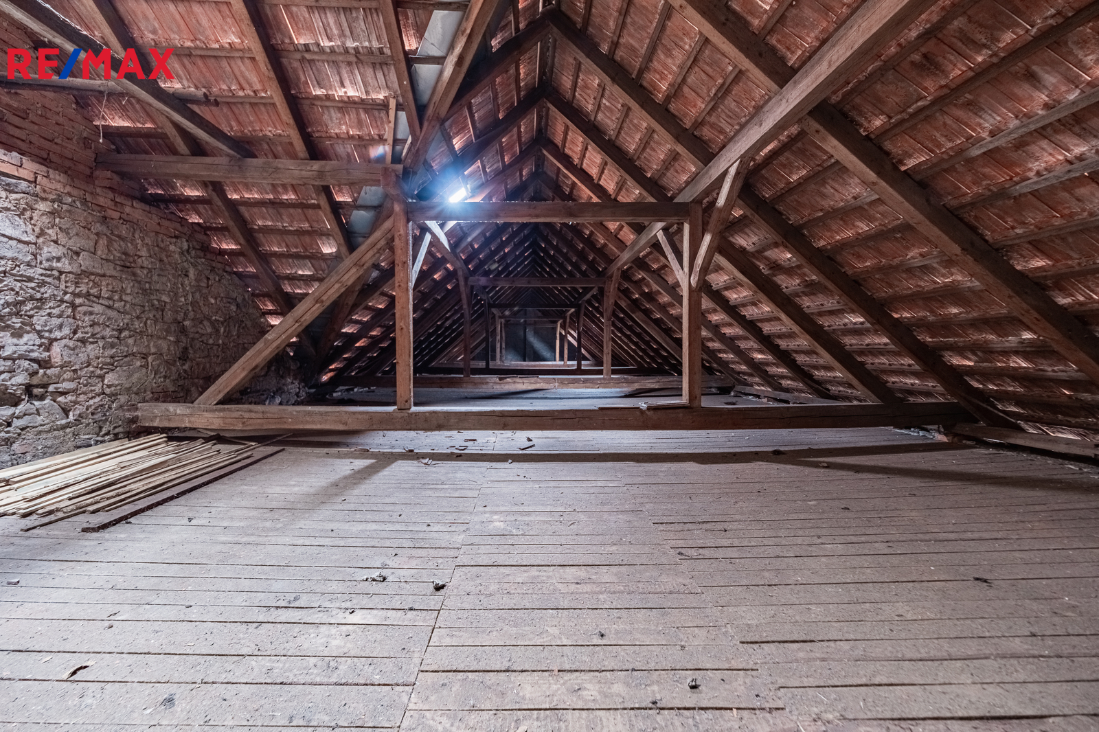 Podkroví domu je v současnosti určeno k rekonstrukci a nabízí velký potenciál pro vybudování nájemních bytů či ubytovacích kapacit.