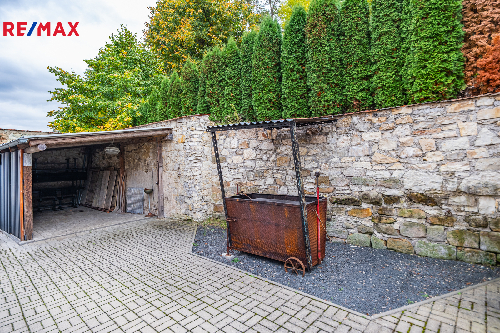 V uzavřené části pozemku je venkovní přístřešek pro auto, možnost posezení u krbu a předzahrádka s posezením před domem, která doplňuje příjemnou atmosféru objektu.