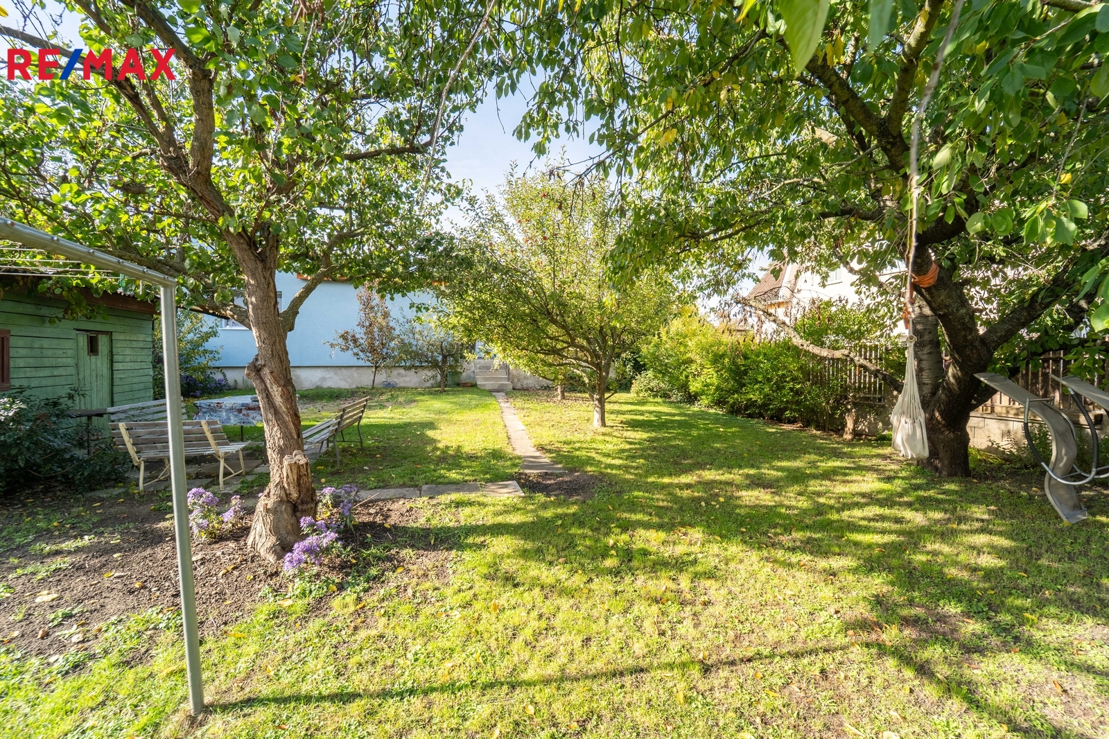 Zahrada u domu o velikosti 303 m2 poskytuje klid a útočiště s posezením pod ovocnými stromy vedle zahradního domku, díky němuž máte kam uklidit vše potřebné pro její údržbu.