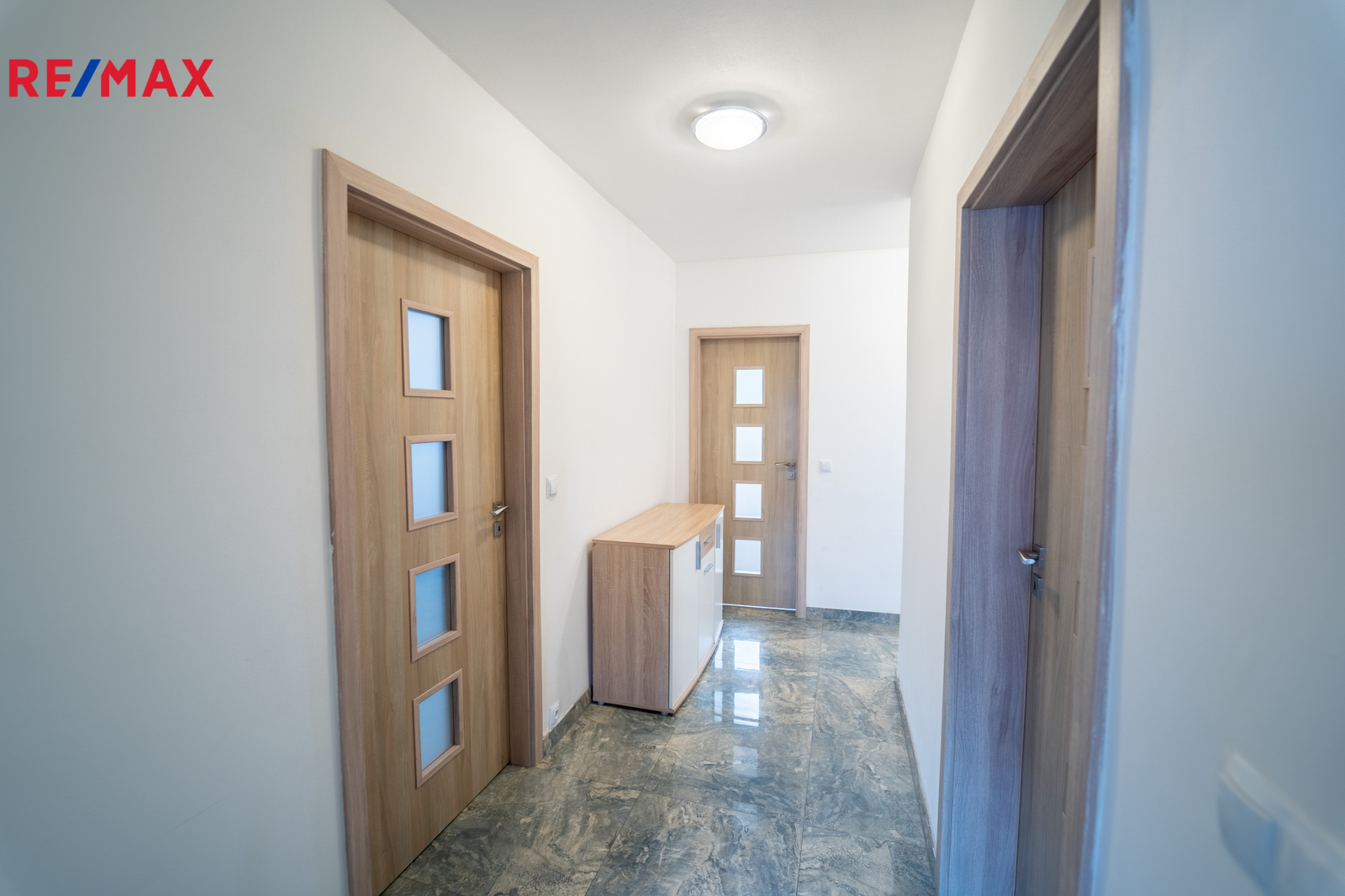 Společná chodba pro dva byty vedle sebe byt č. 2 o velikosti 2 +kk/cca 34,37m2 s koupelnou se sprchovým koutem a WC, byt má vlastní bojler, el. hodiny, je vybaven spotřebiči (lednice, el. sporák a trouba, digestoř, pračka, mikrovlnná trouba a nábytek)