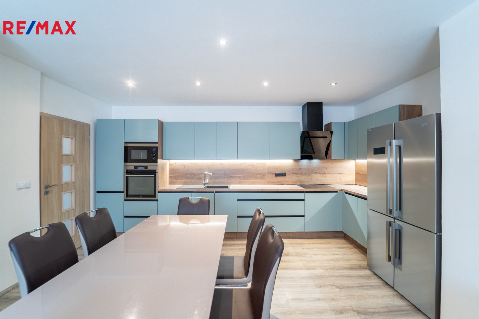 Dům je částečně podsklepený s komorou na potraviny, technickou místností s pračkou, sušičkou a bojlerem zn. DRAŽICE, 2 x pokoj a jedním pokojem pro hosty se samostatným vchodem z nádvoří. Obývací pokoj s oknem do ulice je součástí kuchyně s novou kuchyňskou linkou se spotřebiči, vše součástí domu a ceny. Spotřebiče: americká lednice zn. BEKO, horkovzdušná trouba zn. AEG, mikrovlnná trouba zn. Concept, sklokeramická deska zn. AEG, digestoř zn. Concept. Koupelna s rohovou vanou a sprchovým koutem, WC je samostatné s malým umyvadlem. Podlahy domu jsou plovoucí a kremnická dlažba s podlahovým topením v koupelně a v ostatních místnosti jsou osazeny radiátory.