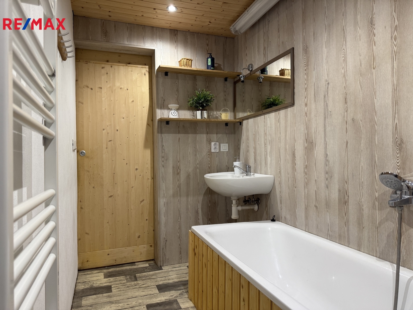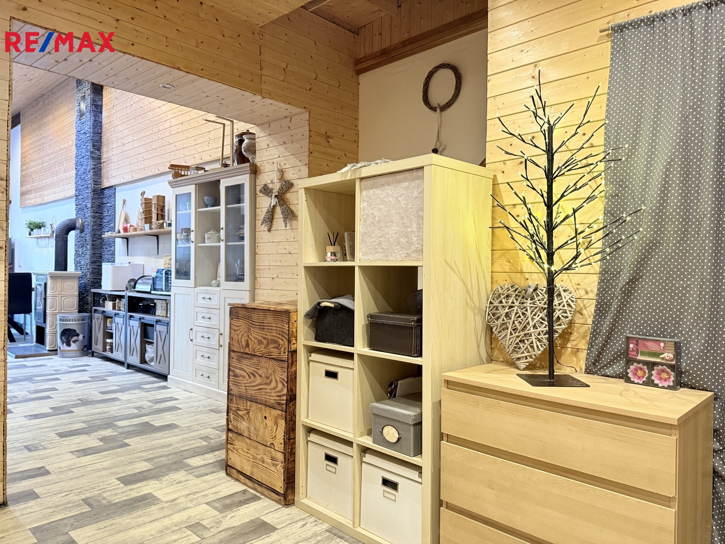 Topení zajišťují krbová kamna, která poskytují nejen příjemnou atmosféru, ale to teplo z kamen je prostě jiné. Případně jsou k využití elektrické přímotopy. Ohřev vody je zajištěn elektrickým bojlerem. Dům je připojen na vodu i kanalizaci.