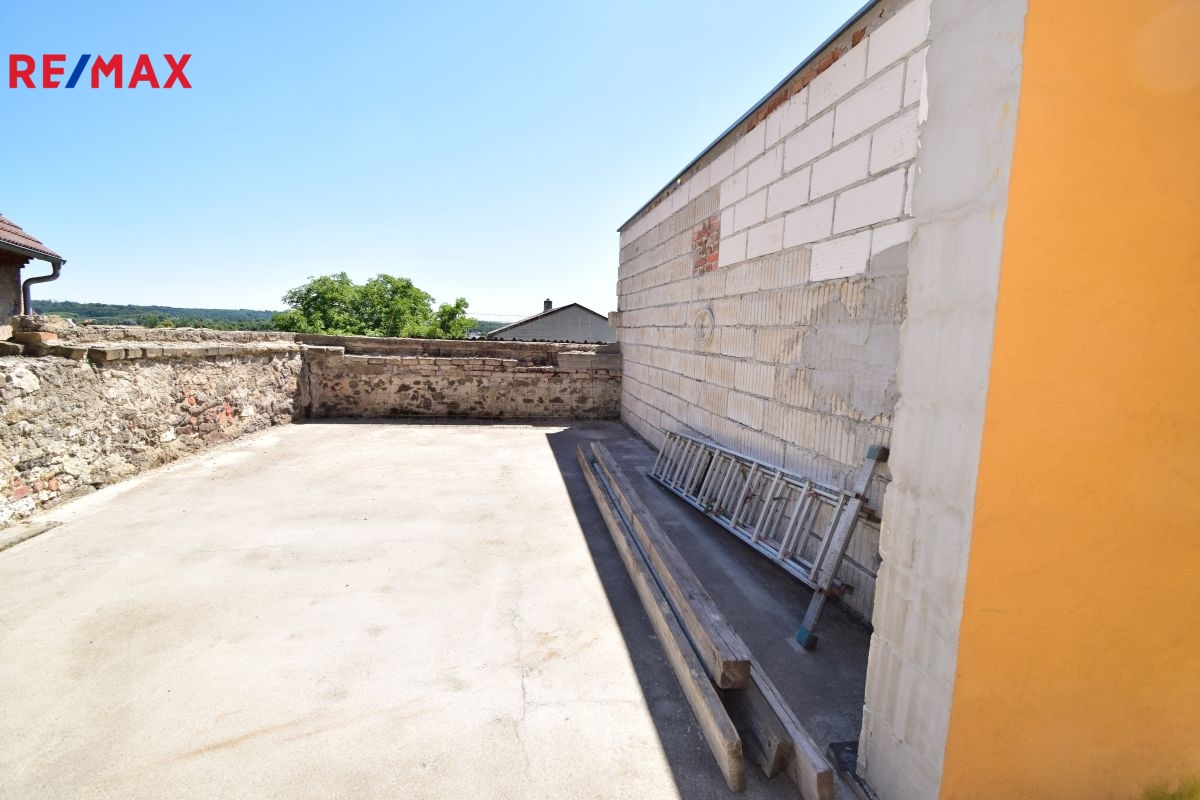 Dům nabízí absolutní soukromí na dvoře, kde je již hotová velká pergola na posezení a grilování, dále je zde prostor pro bazén nebo velkou garáž /velká betonová deska/, také další prostor na skladování, sklípek a část maštale, která slouží pro uschování nářadí a materiálu.