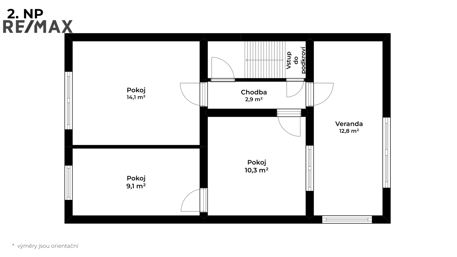2.NP - tři pokoje, veranda, z chodby vstup na prostornou čistou půdu