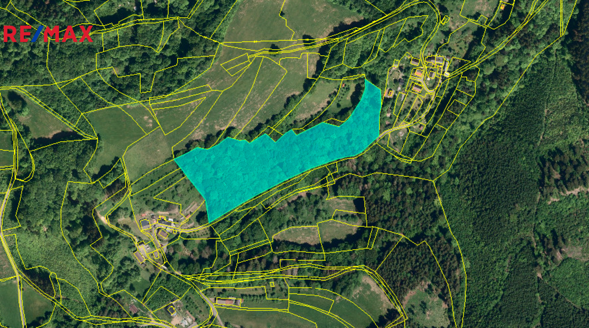 Jedná se o soubor pozemků vedených v katastru nemovitostí jako lesní pozemky a trvalý travní porost.
