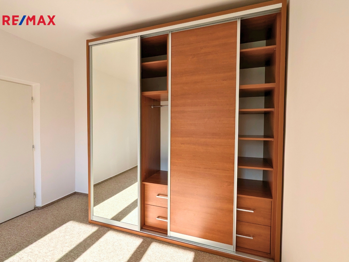 • Dostatek úložného prostoru v celém bytě – praktická šatna s regály (přístupná z chodby), prostorná šatní skříň a komoda v pokoji, sklepní kóje v přízemí domu