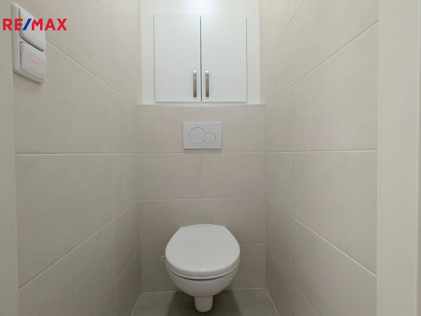 • Koupelna s vanou a zástěnou, pračka se sušičkou (2v1) a skříňkami