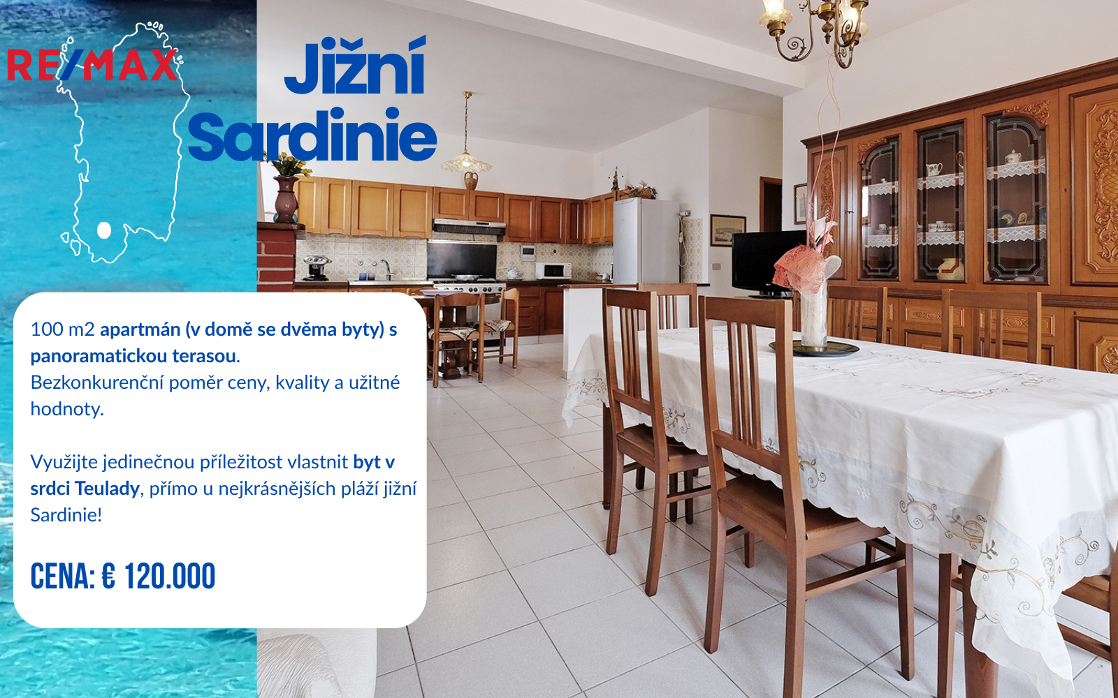 Byt 3+kk. 100 m² s terasou, Teulada, Jižní Sardinie