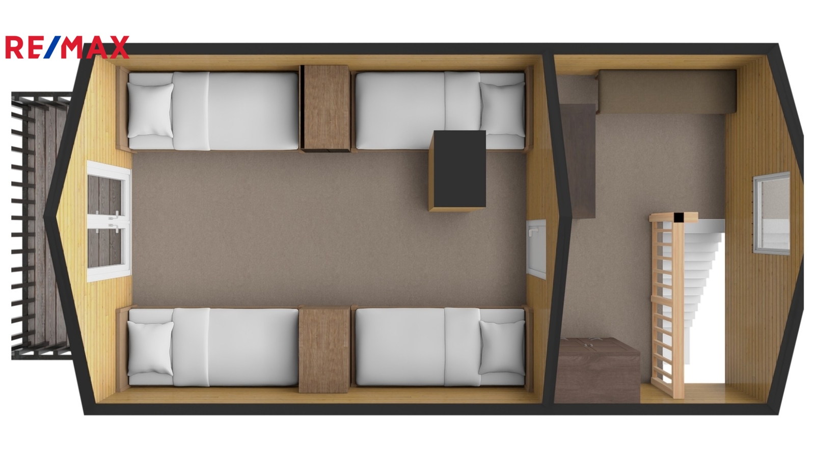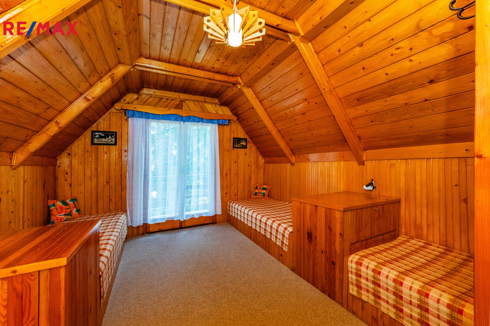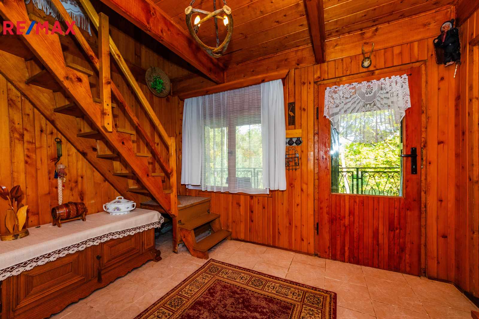 V přízemí využijete obývací pokoj (16 m²), kuchyni (4 m²), komoru (1,20 m²) a předsíň se schodištěm (8,32 m²). Po dřevěných schodech vystoupáte do patra, kde je k dispozici ložnice (15,80 m²) s balkonem (2,60 m²) a výstup do podkroví (7,35 m²). Ve zděném suterénu je umístěna uzamykatelná garáž (24,60 m²) s malou dílničkou a koupelnou se sprchovým koutem. Dále je k dispozici samostatný sklep (3,68 m²) a samostatná toaleta (1 m²). Strávíte tu krásný večery s kytarou u ohniště. Využijete taky vlastní vrtanou studnu s hloubkou 22 metrů.