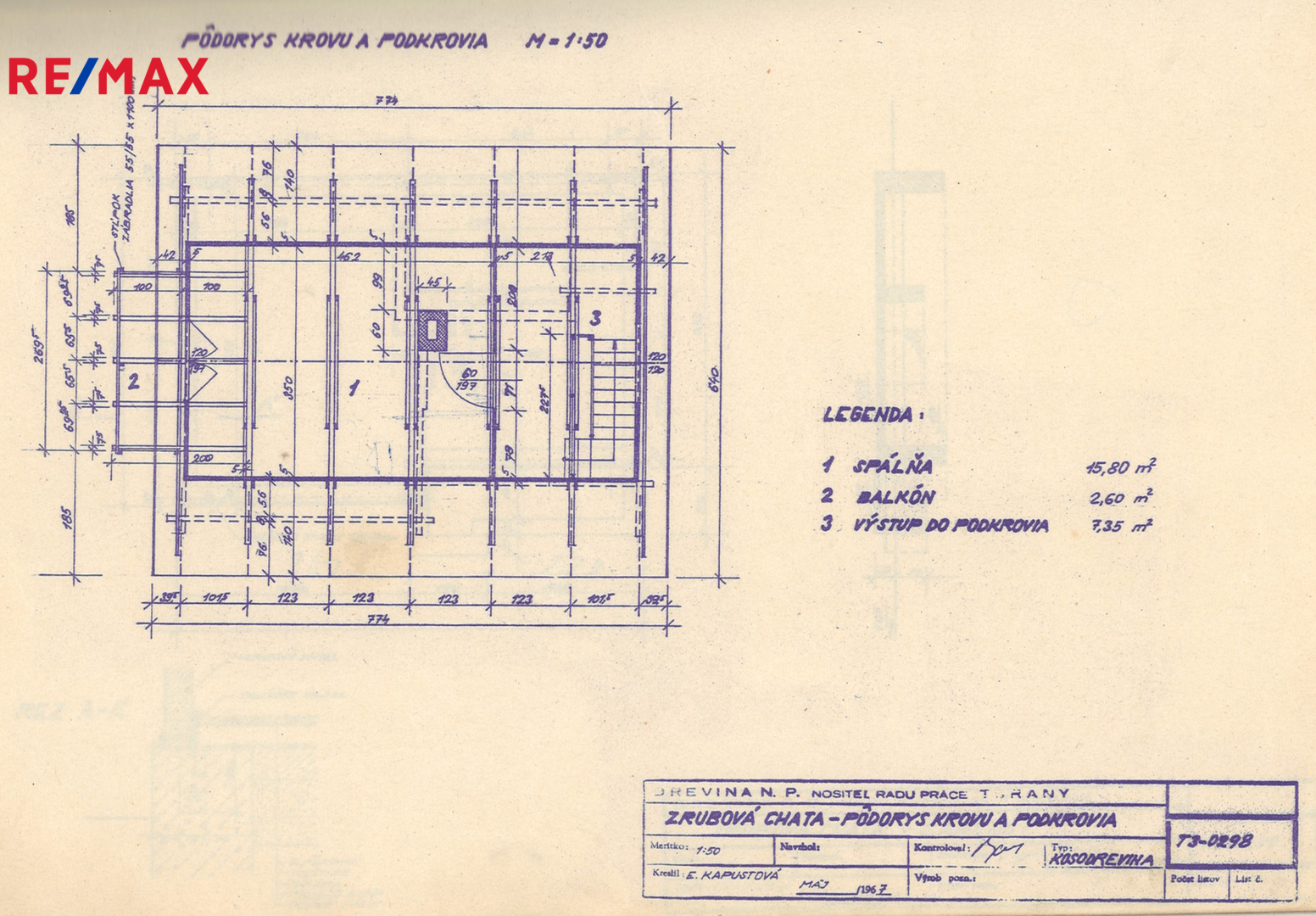 Zrubová patrová chata Kosodrevina s celkovou plochou necelých 85 m², je postavená na vlastním pozemku s rozlohou 412 m² (zastavěná plocha a nádvoří 42 m², pozemek 370 m²). Chata je umístěná jako poslední samostatná stavba u lesní cesty, nemá přímé sousedy a pohodlně se k ní dostanete autem.