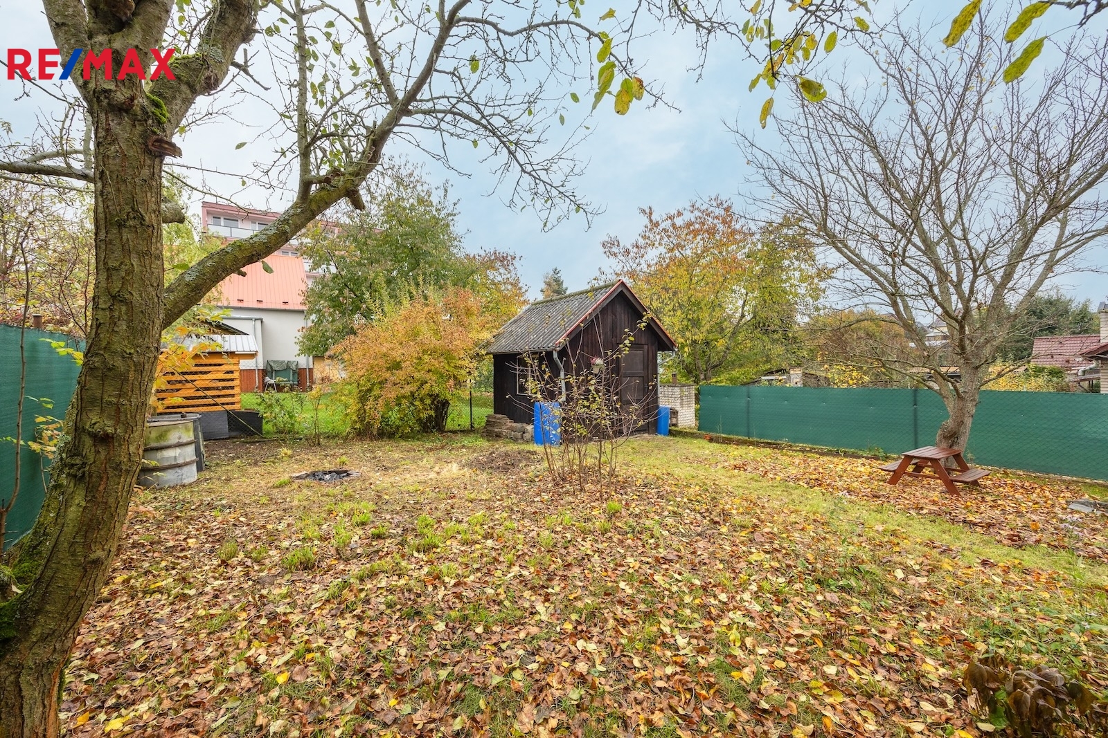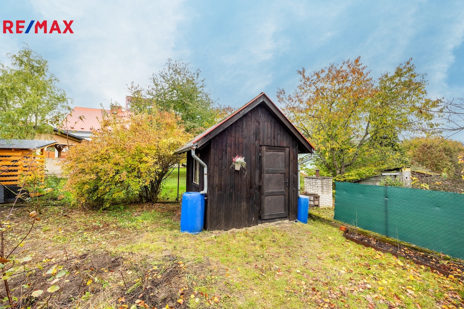 Na pozemku se nachází podsklepený zahradní domek s půdou o zastavěné ploše 9 m² a celkové užitné ploše 17 m².