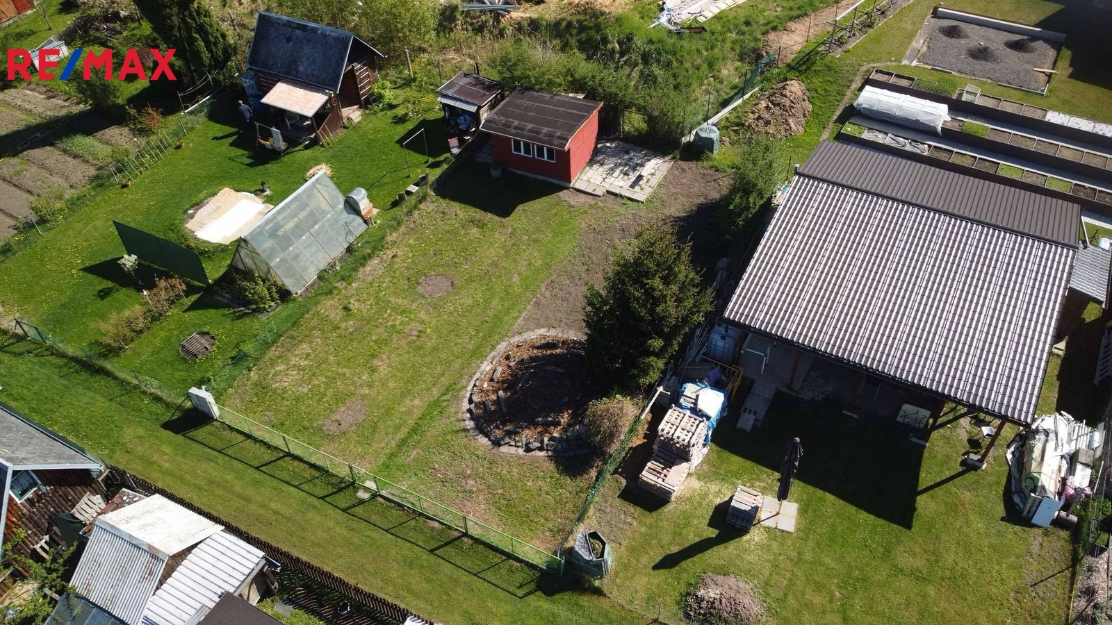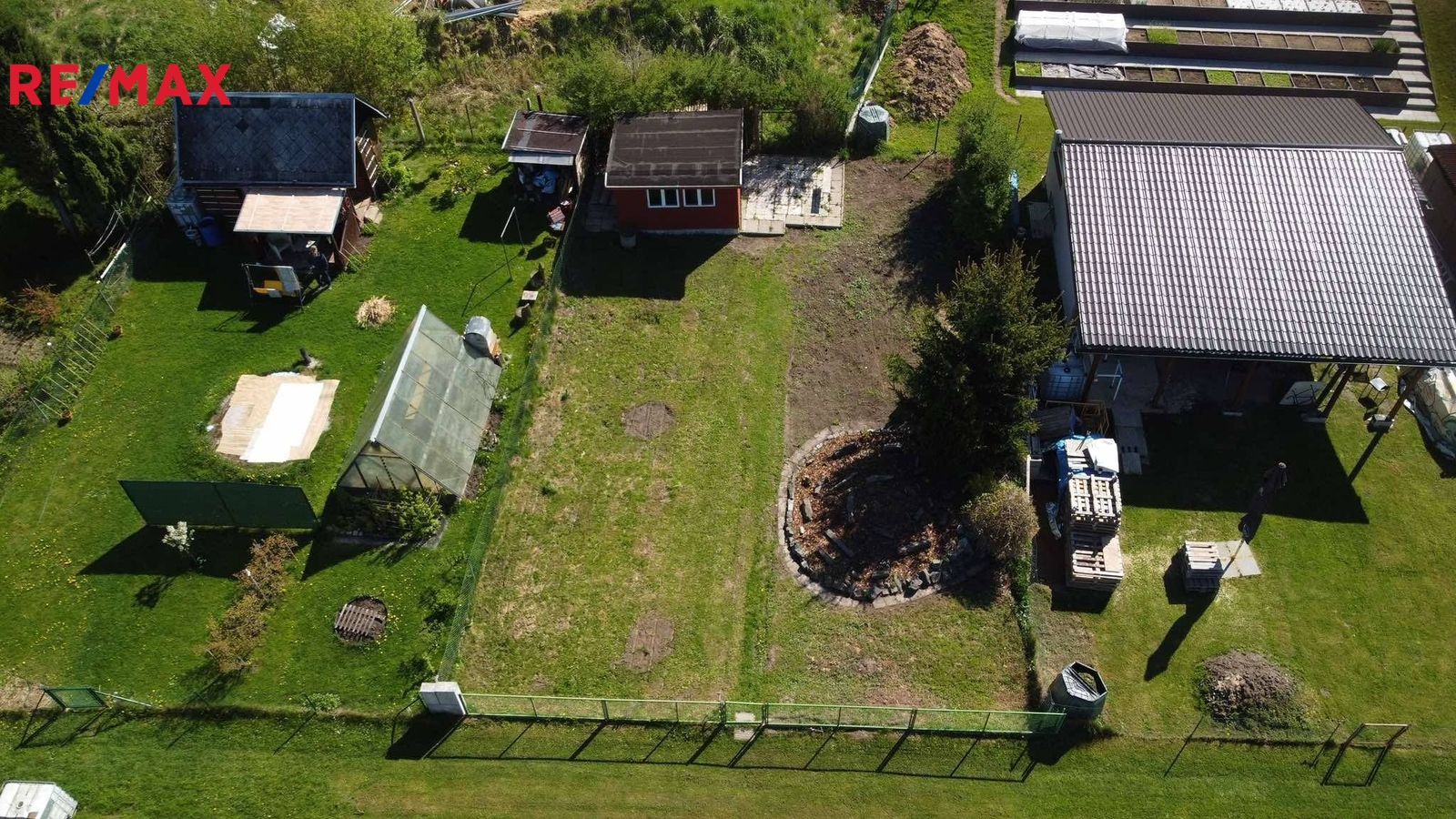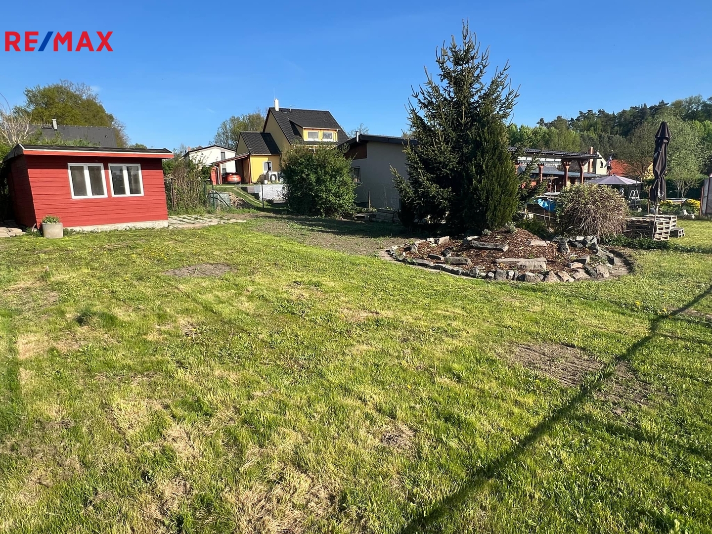 Pozemek má výměru 298 m² , je rovinatý a pečlivě udržovaný. K dispozici je přípojka sezónní užitkové vody, která je na hranici pozemku.