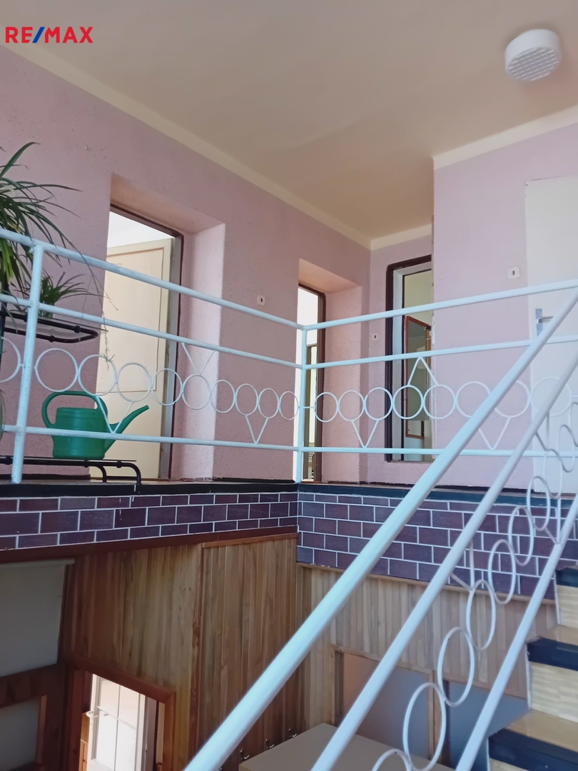V přízemí se nachází prostorná hala se schodištěm, kuchyně, koupelna s vanou, WC a tři obytné místnosti. V patře naleznete dalších sedm pokojů, druhou koupelnu (sprcha) a WC. Součástí domu je hospodářská část s garáží, dílnou, sklady a kotelnou. Uzavřený dvorek s ochozem v patře vytváří klidné atrium, které zaručuje naprosté soukromí.