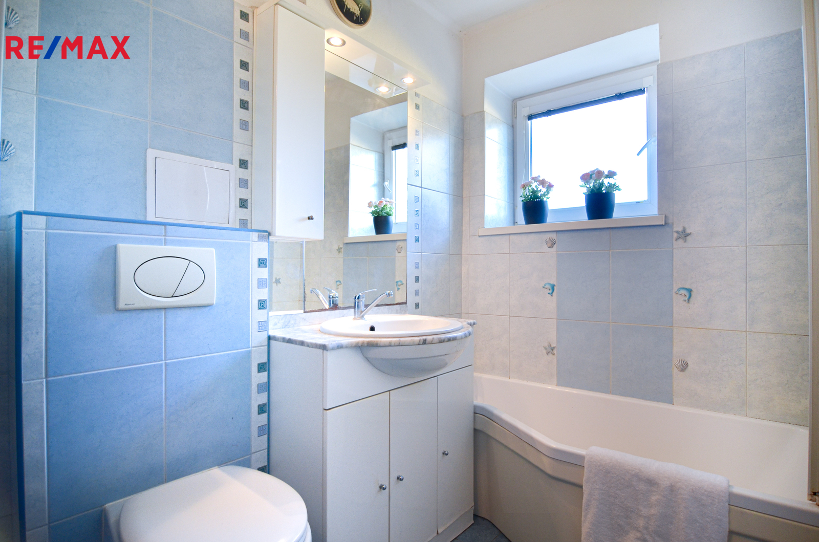Koupelna (4,29m2)s vanou, umývadlem,společné wc, v koupelně je taky plynový kotel pro topení i ohřev teplé vody, otopný žebřík.