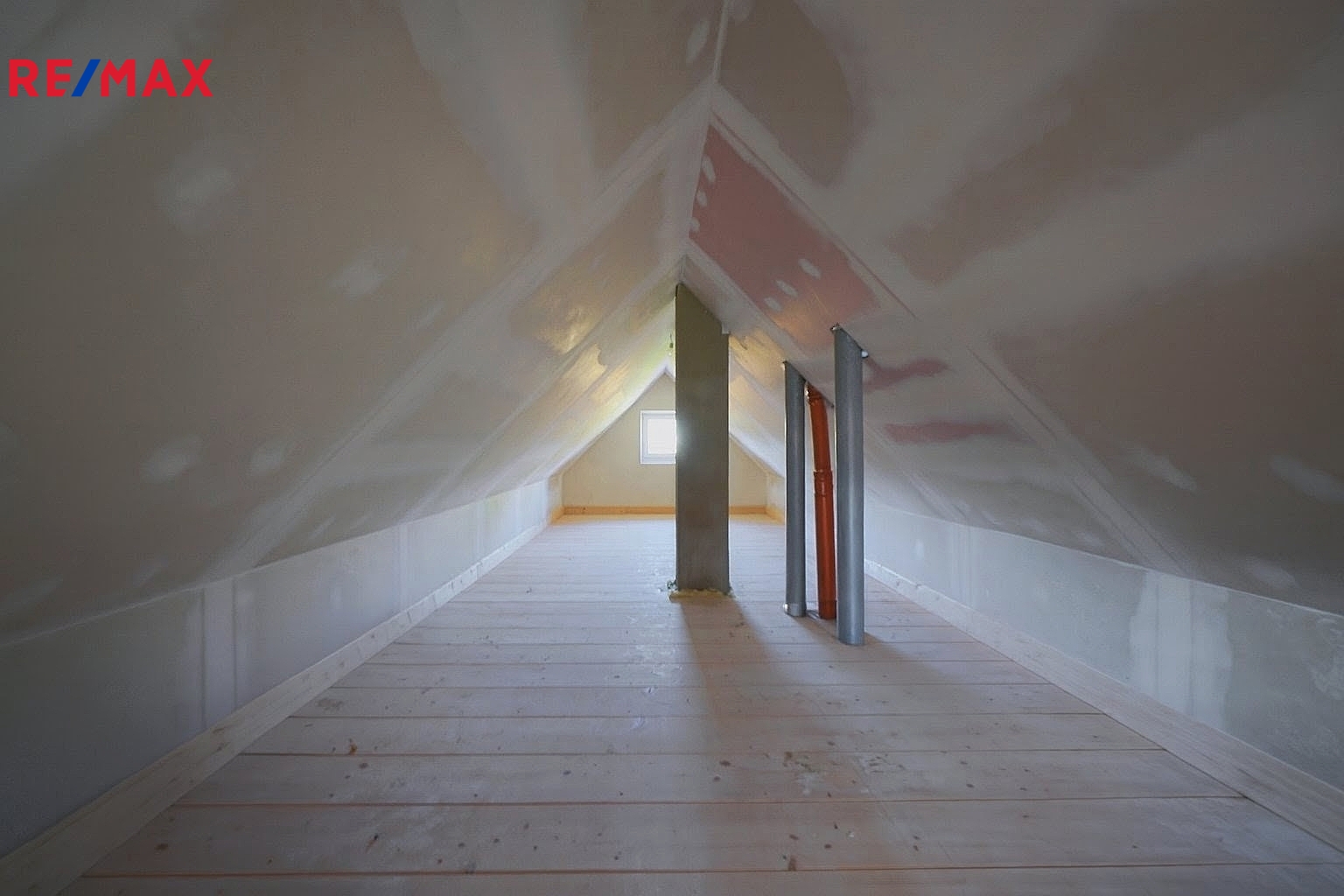 Vysoký komfort bydlení lze ještě navýšit. Celá půda je již kompletně zateplená a nabízí tak možnost snadného rozšíření obytné plochy o cca 35 m² (např. o další pokoj, pracovnu či hernu).