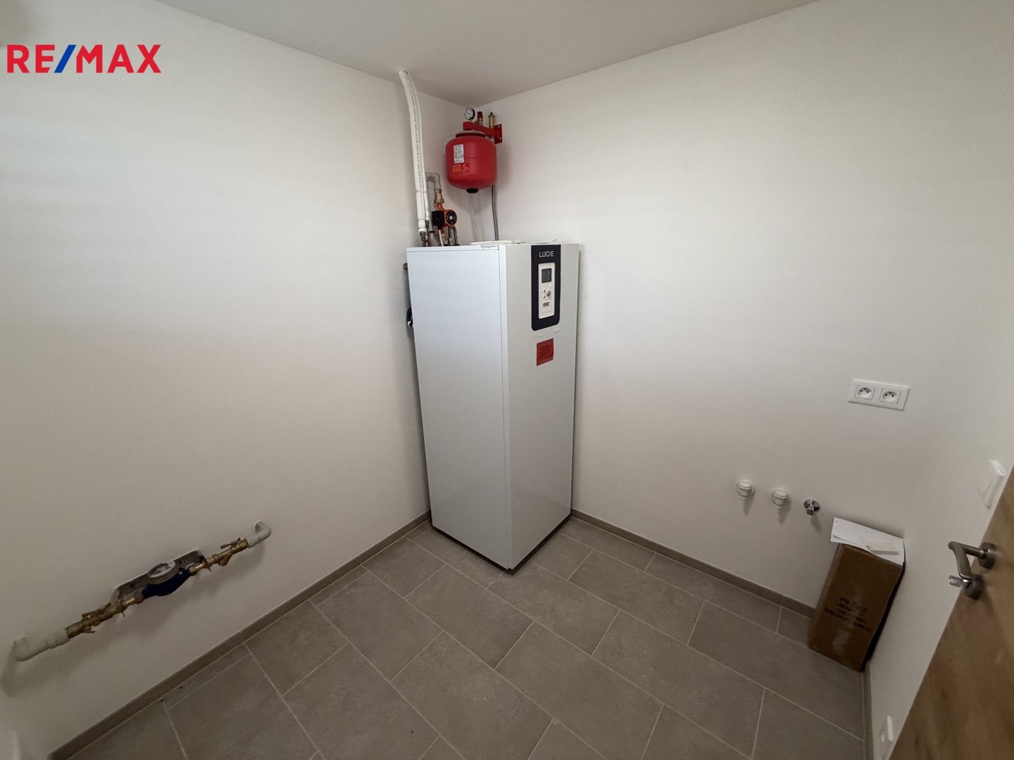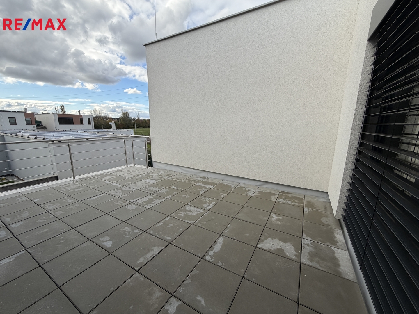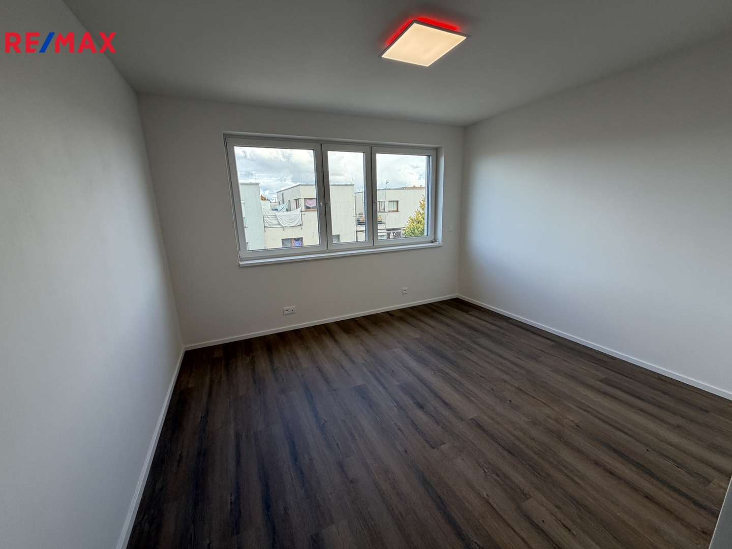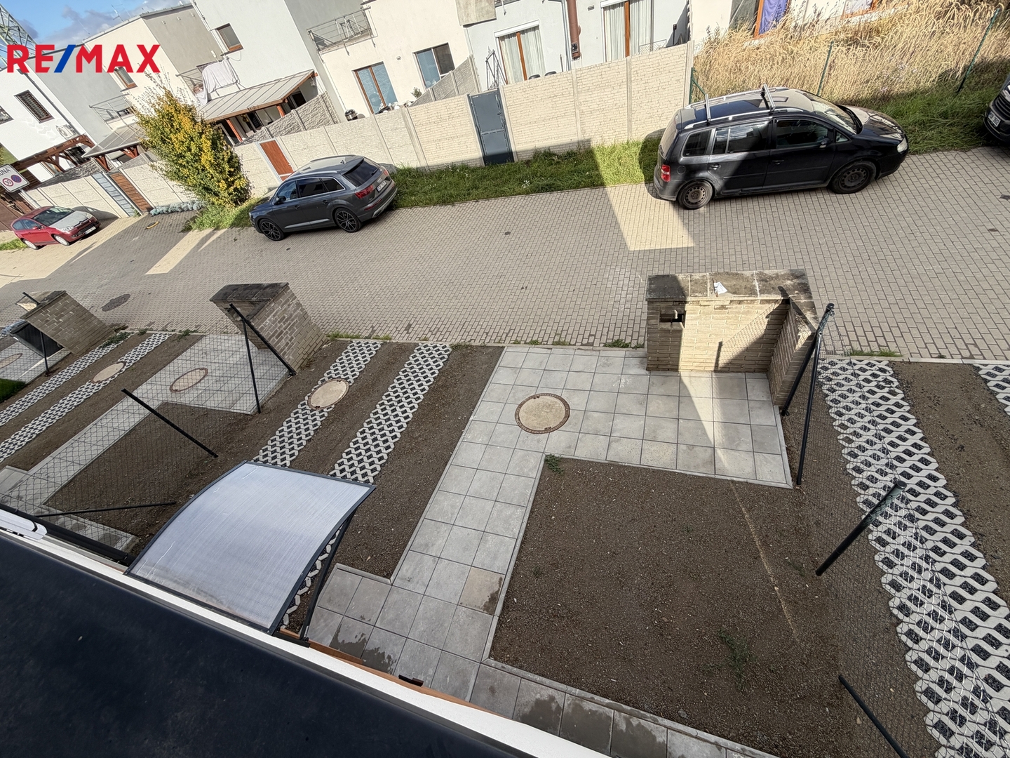 Jedná se o pronájem řadového rodinného domu 4+kk s garáží venkovním stáním před domem a zahrádkou za domem na ul. Vrbenská, Hostavice. Dispozičně je dům tvořen vstupní předsíní, 4,74m2, technickou místností 5,16m2, garáží 16,37m2 spojovací chodbou 6,75m2, WC 2,13m2, komorou pod schodištěm 1,82m2, obývacím pokojem s kuchyňským koutem 37,88m2 z něhož je vstup na zahradu za domem, v patře se nachází tři samostatné neprůchozí pokoje o výměrách 19,7m2, 16m2 a 12,62m2, dále koupelna s WC 4,92m2 a velká terasa určena pro celé toto podlaží. Celý dům disponuje el. ovládanými předokeními roletami, kamerovým systémem, který monitoruje okolí domu. Vytápění domu spolu s ohřevem TUV zajištuje tepelné čerpadlo vzduch-voda umístěné v technické místnosti. Pro více informací k nemovitosti kontaktujte makléře nabídky. Kauce 2x nájem, provize RK 1x nájem. Volné ihned.