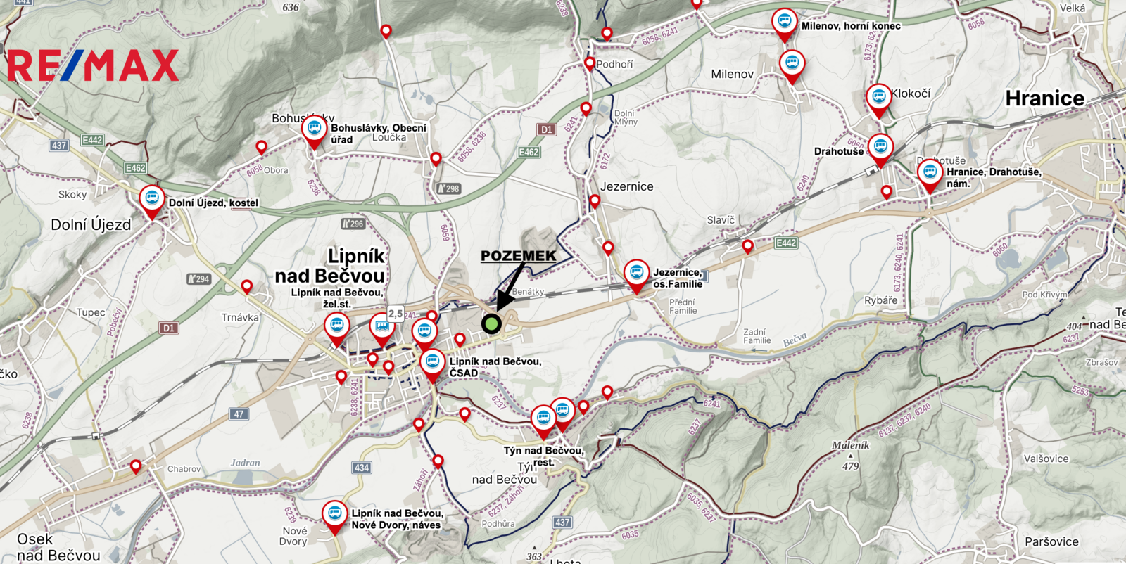 Veškerá občanská vybavenost je v dosahu – centrum Lipníka nad Bečvou s obchody, školou i zdravotnickými službami je vzdálené jen 2 km, do Hranic je to 10 km a pro rychlý nákup potravin stačí zajít na čerpací stanici pouhých 550 metrů od pozemku. Krásné okolí láká k výletům a odpočinku, například jen 6 km odsud se tyčí známý hrad Helfštýn.