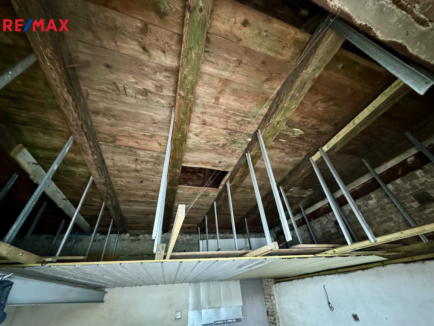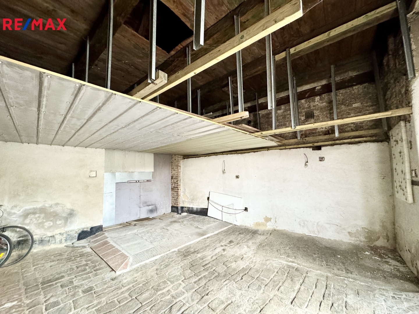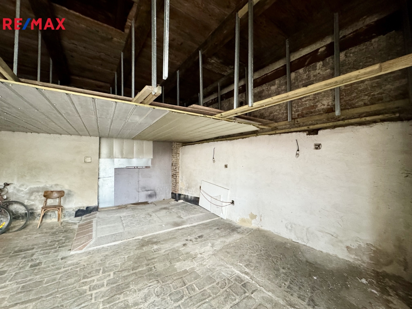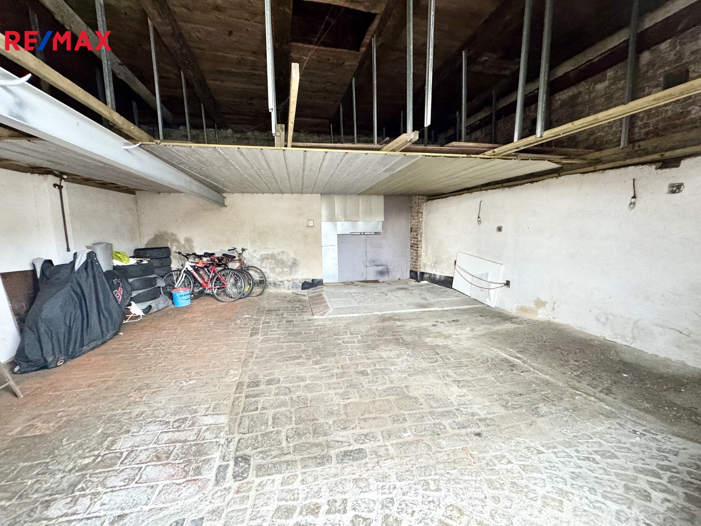 Garáž má 38 m2 a je přístupná do půdního prostoru a podkroví (výška vjezdu 2,40, šířka vjezdu 2,40, délka 5,50 m, šířka 6,90 m). Vrata plechová. Elektrická přípojka je v prostřední garáži a je možné se připojit. Volná ihned.