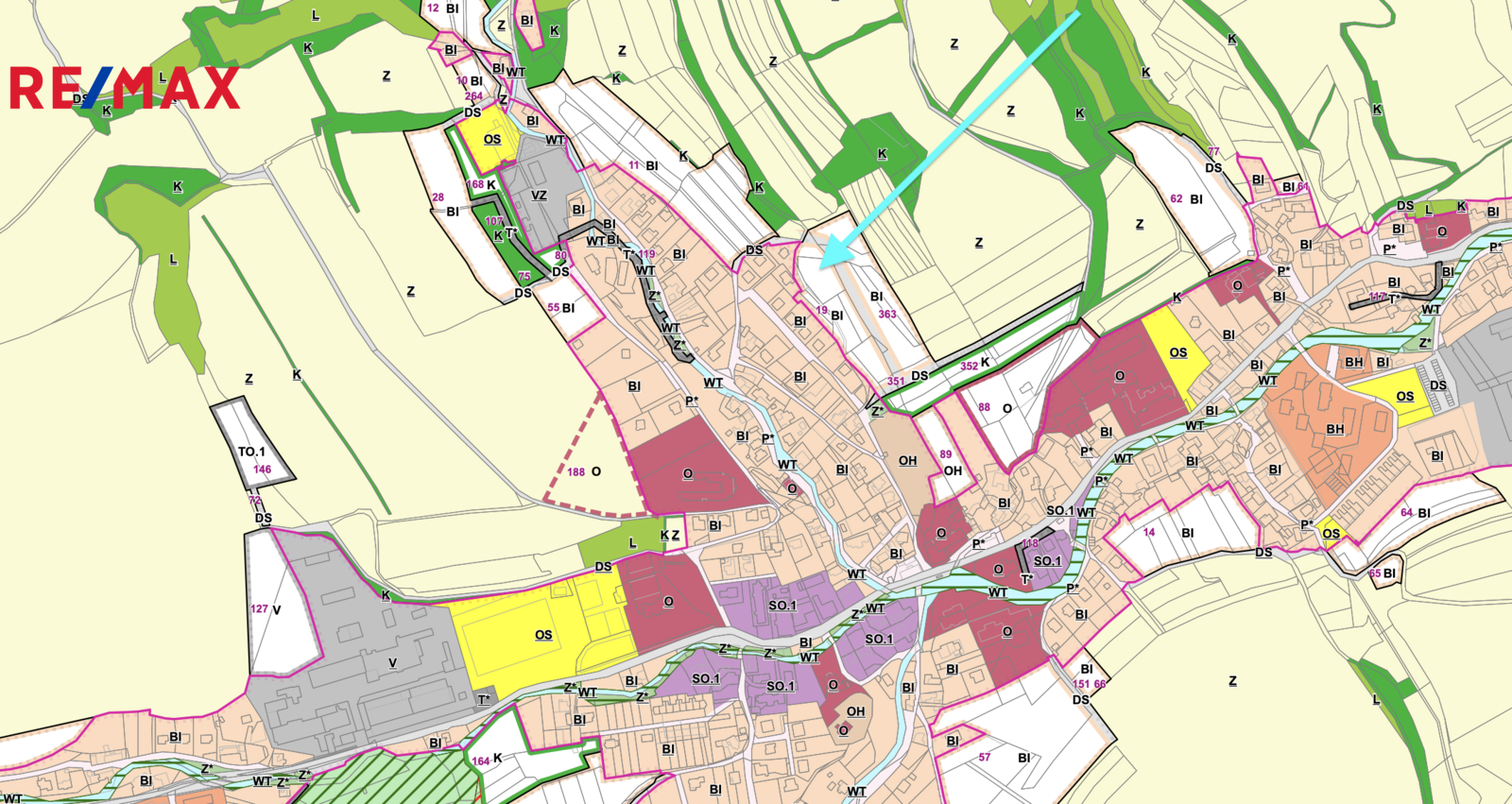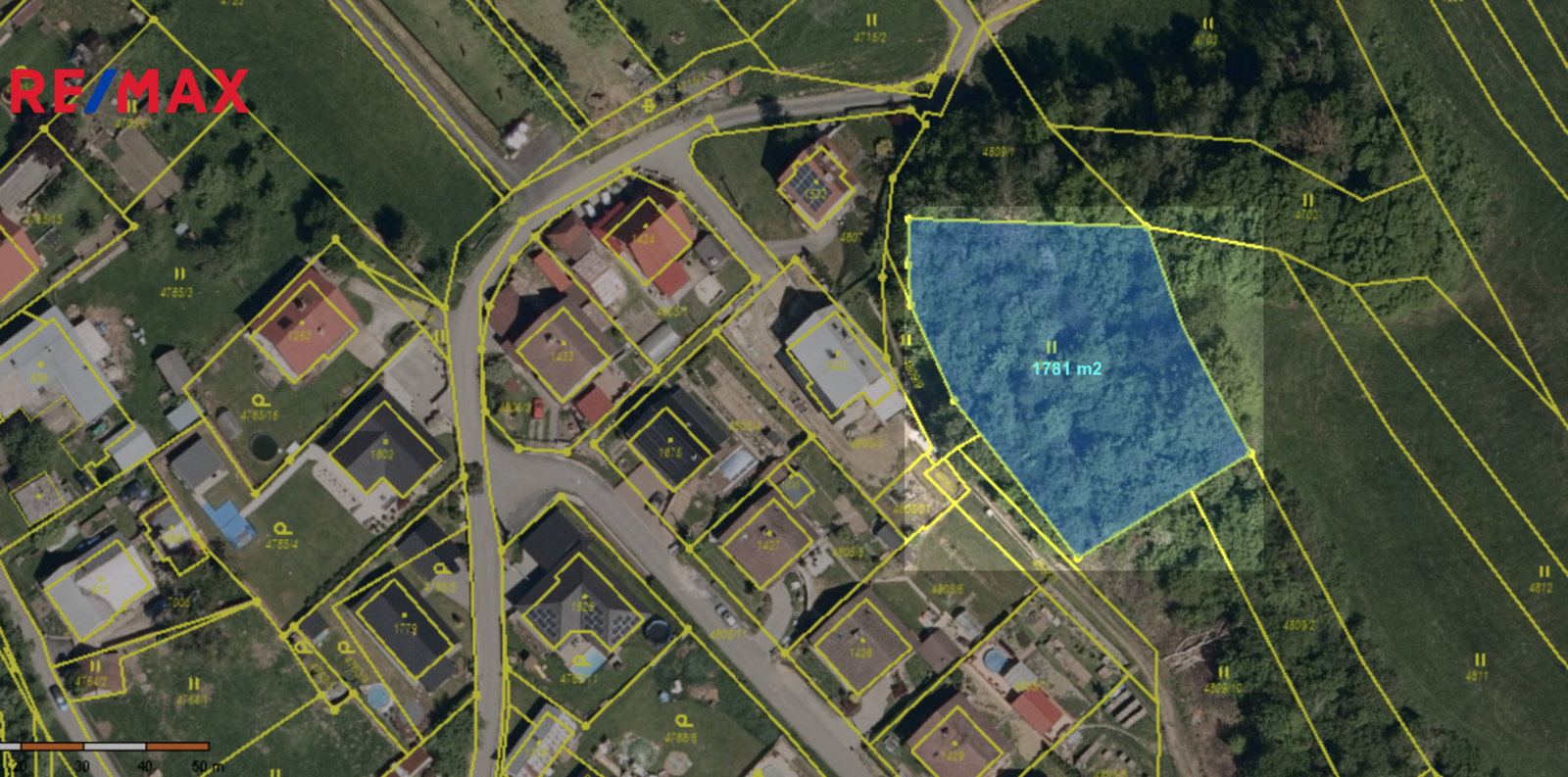 Pozemek je územním plánem obce určen k individuálnímu bydlení. Je svažitý-mírně svažitý, v současné době je celý zarostlý náletovým dřívím. Vyšší poloha pozemku zaručuje nádherné výhledy na centrum obce a vzdálené okolí.