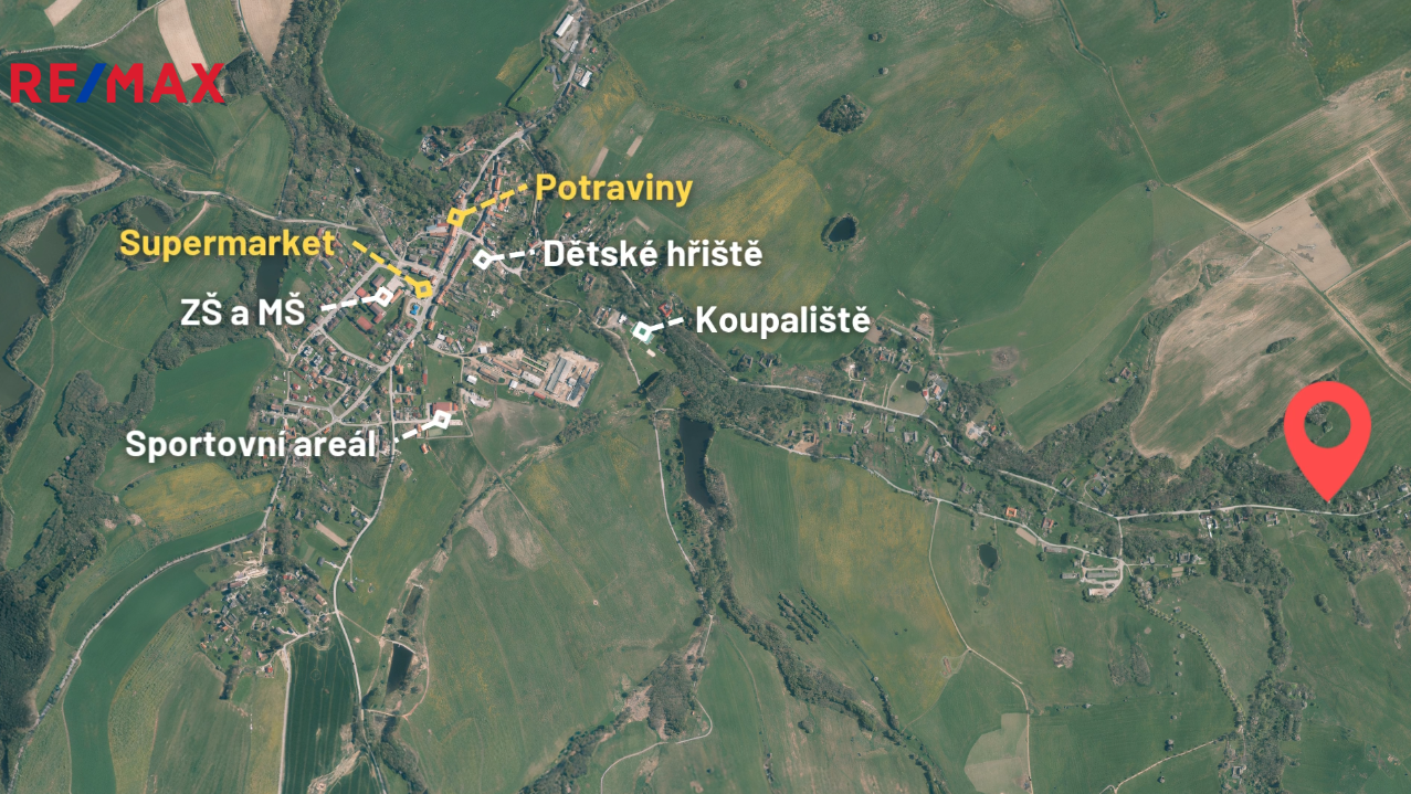 Horní Stropnice se základní občanskou vybaveností je vzdálená necelé 3 km s možností dopravy MHD se zastávkou kousek od pozemků.