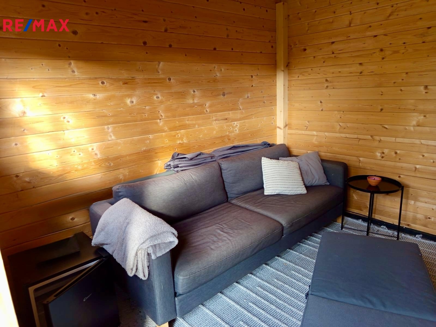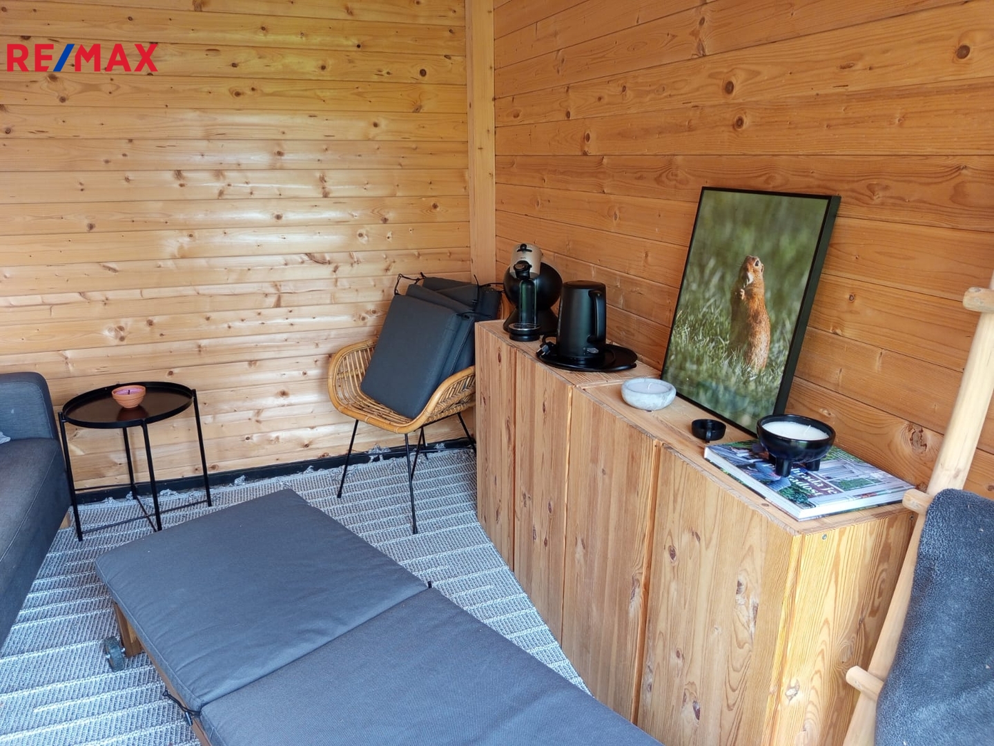 Na pozemku se nachází dřevěná chata, která je vybavena 230 V elektřinou, což zajišťuje pohodlné využívání prostor. K nemovitosti náleží zdroj pitné i užitkové vody z místního zdroje. Na pozemku se dále nachází bazén, který je zčásti zapuštěn. K bazénu je připojena písková filtrace Azuro.