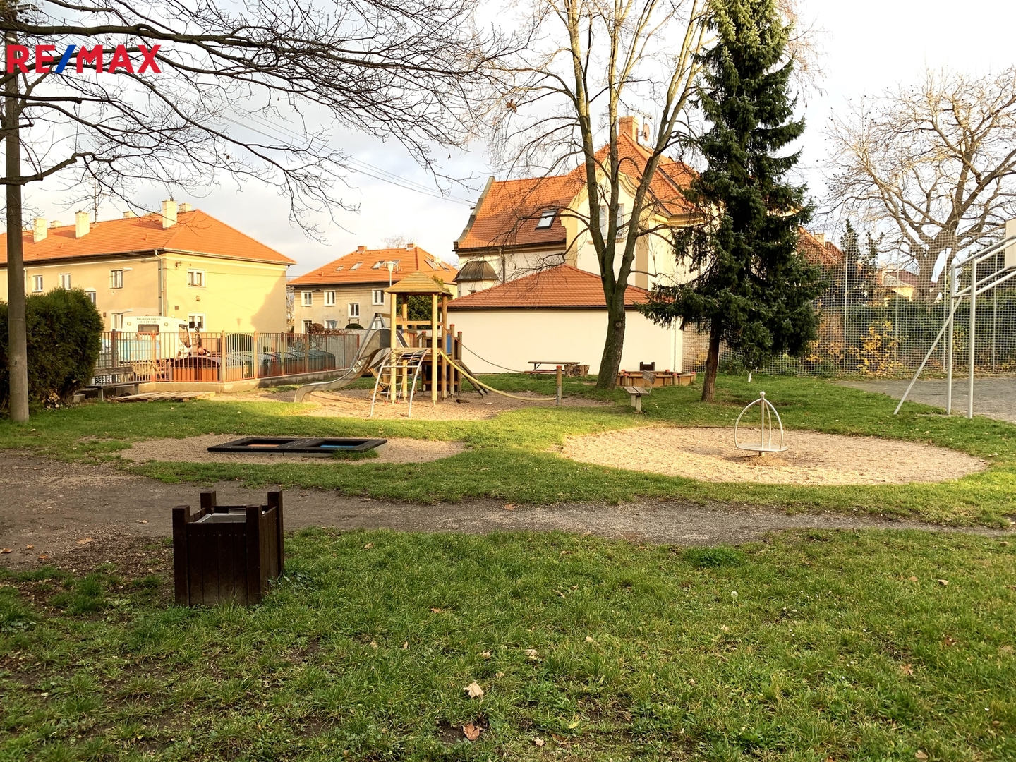 Byt se nachází v 2. patře (3. NP) udržovaného domu – nová plastová okna. V okolí je dostatek zeleně i možnosti pohodlného parkování. Před domem se nachází veřejně přístupné dětské hřiště a sportoviště na které je výhled přímo z oken bytu.