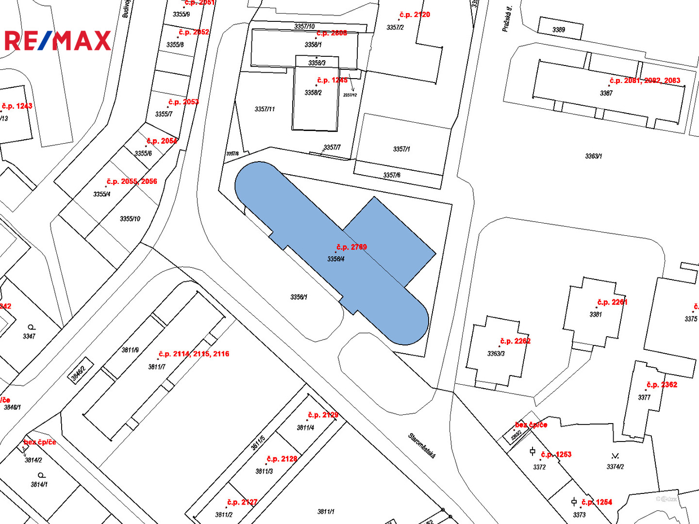 ulice Staroměstská, České Budějovice – část obce České Budějovice 3 mapa