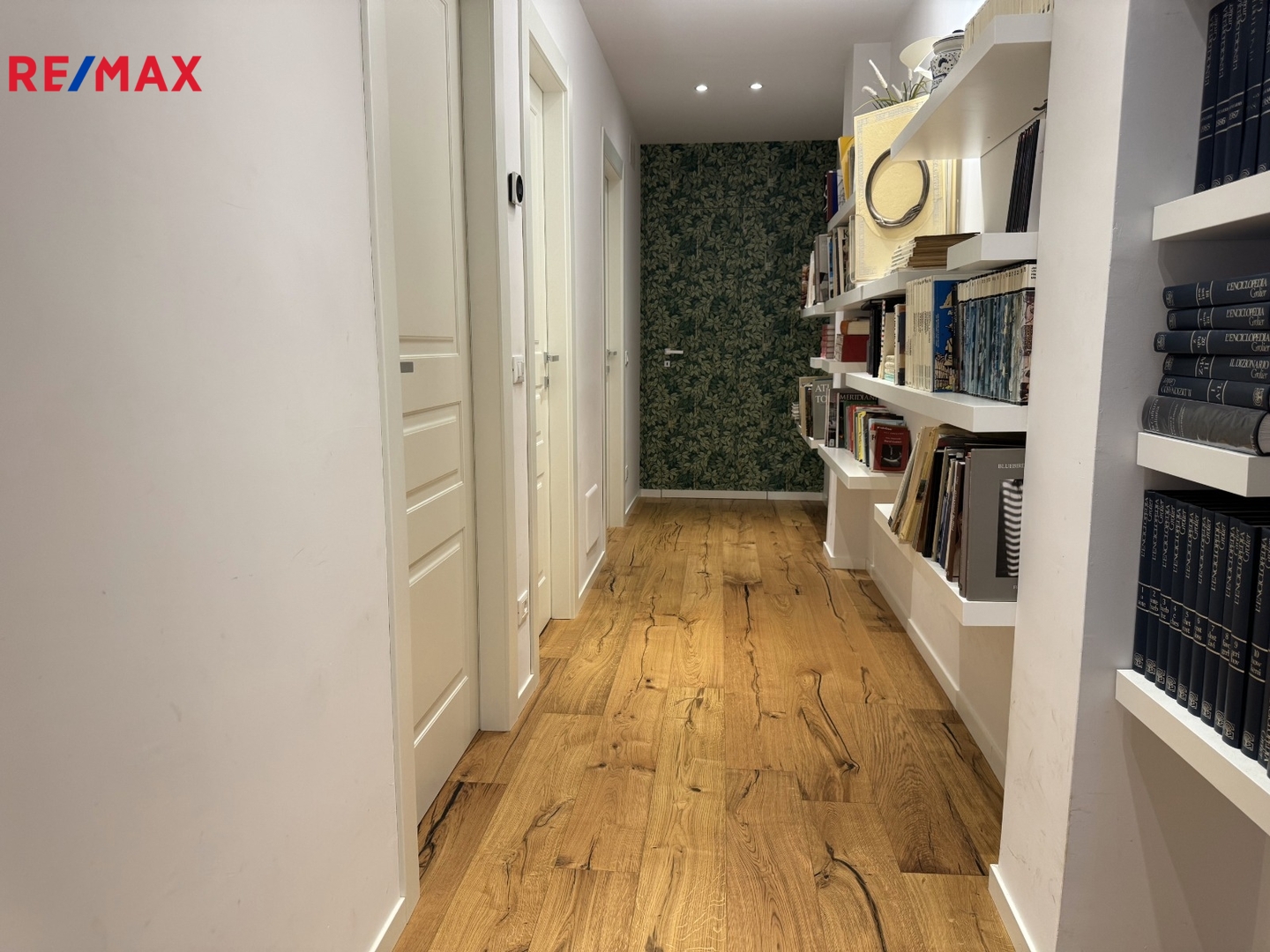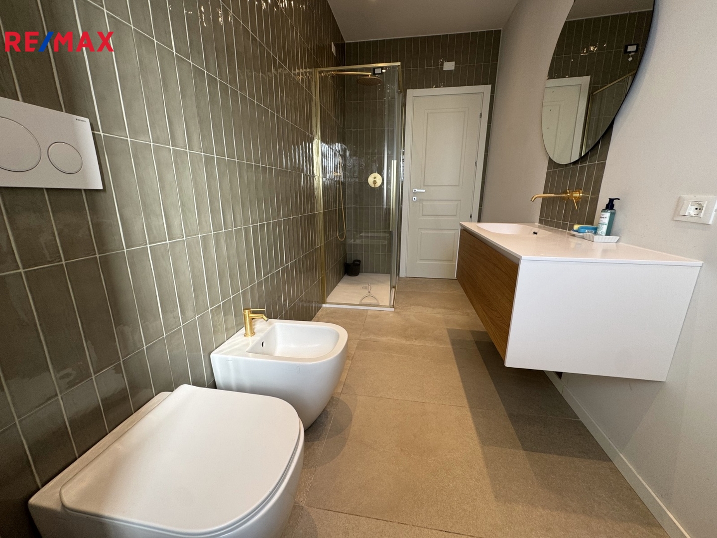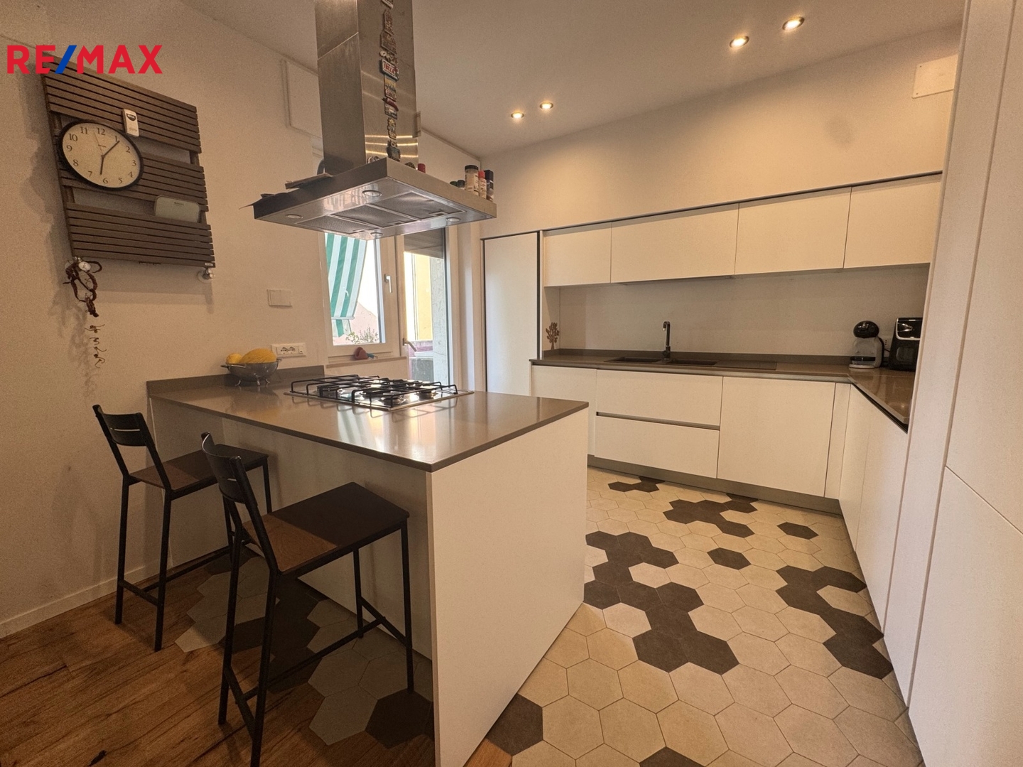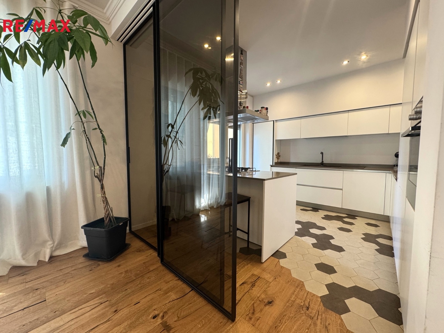 Tento elegantní byt o dispozici 5+kk se nachází ve čtvrtém patře udržovaného domu s výtahem. Prošel kompletní a vkusnou rekonstrukcí, při níž byly použity kvalitní materiály a prvotřídní povrchové úpravy. Dispozice nabízí vstupní halu, prostorný obývací pokoj, samostatnou kuchyni s jídelním koutem a posuvnými dveřmi z kouřového skla, dvě prostorné ložnice, pracovnu (možno využít jako další ložnici), praktickou prádelnu a dvě koupelny – z nichž jedna je součástí hlavní ložnice se soukromým vstupem. K bytu náleží také velký balkon 21 m2 s příjemným výhledem a sdílené parkovací místo, s možností převzetí pronájmu garáže. Celý byt je vybaven dřevěnými podlahami a všechny místnosti jsou klimatizovány vzduchotechnikou pro maximální komfort během horkých letních dnů.