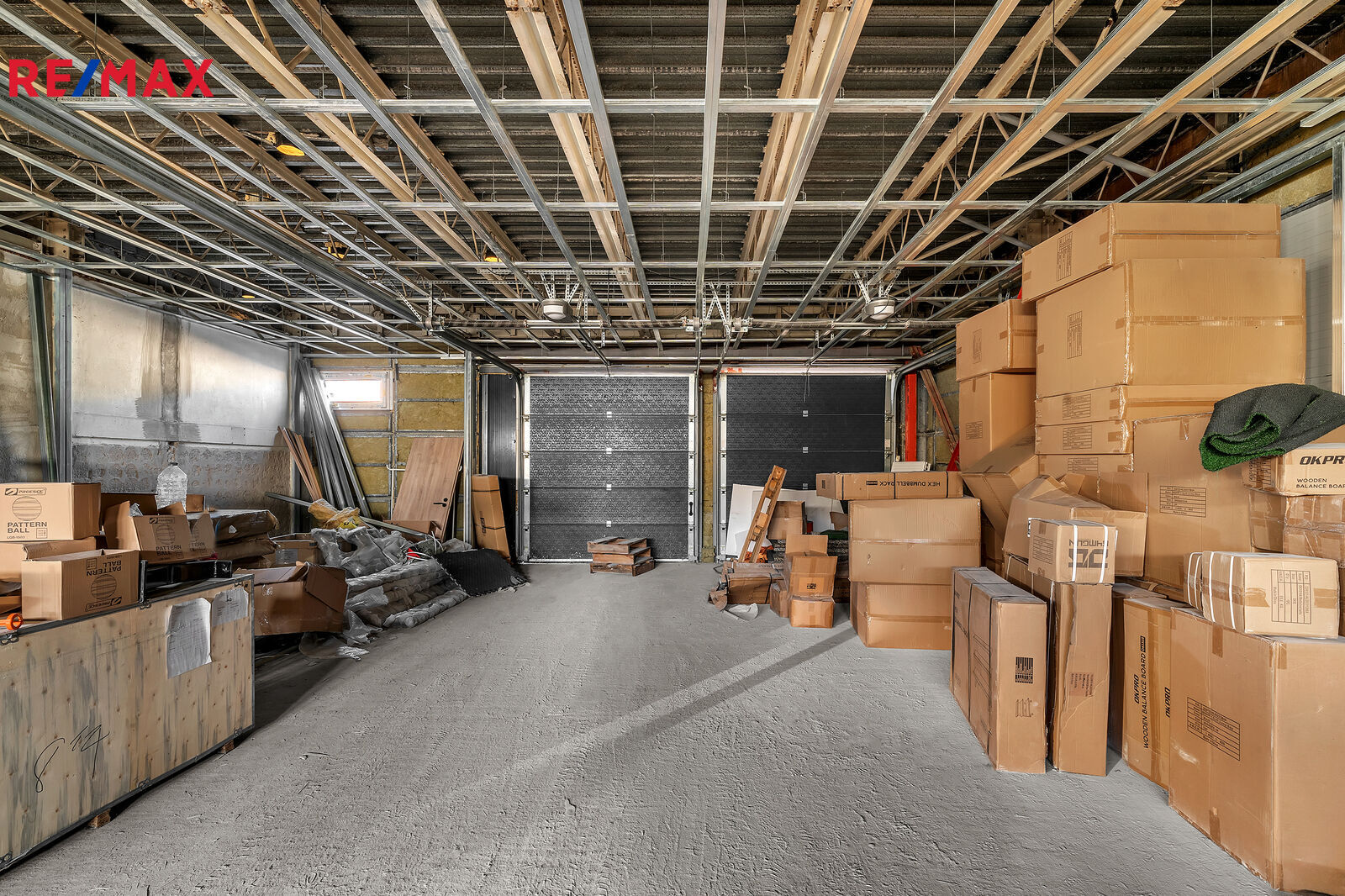 Celková užitná plocha budovy ve dvou patrech činí 876,7 m² a stojí na pozemku o výměře 1004 m². Zastavěná plocha je 451 m². Před budovou je k dispozici parkoviště pro 8 osobních aut. Interiér stavby je v současnosti nedokončený, což umožňuje naprostou volnost při plánování dispozic. Budova má zděný střed se schodištěm do patra, ostatní části jsou postaveny z ocelové konstrukce a opláštěny panely Kingspan, což zajišťuje energetickou úspornost a moderní vzhled. V přízemí se nachází vstup z parkoviště, tři vjezdy do prostor pro sklad a výdej zboží. V patře je navržený kancelářský prostor, sociální zázemí a další místnosti, které lze upravit podle vlastního projektu či specifických potřeb.