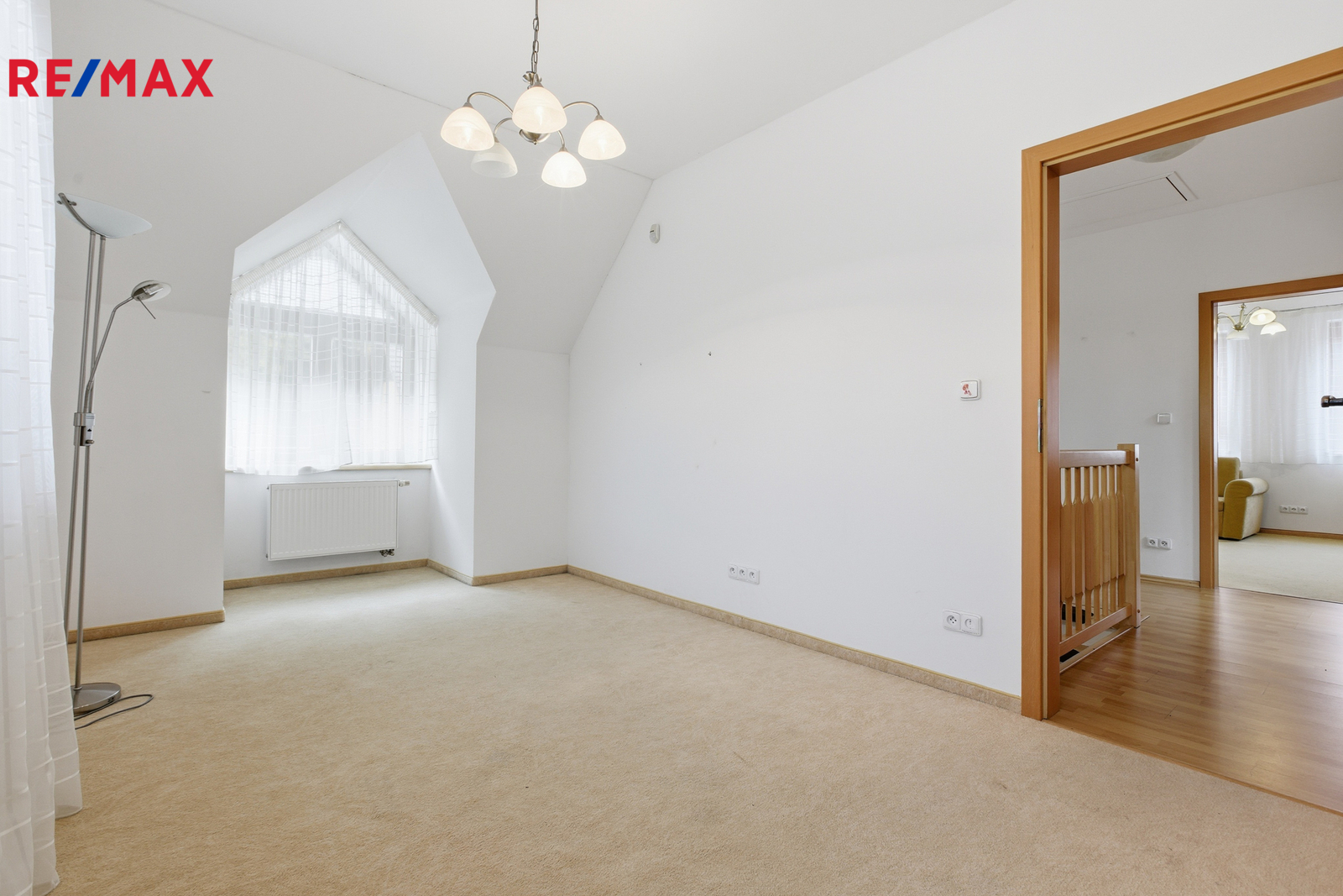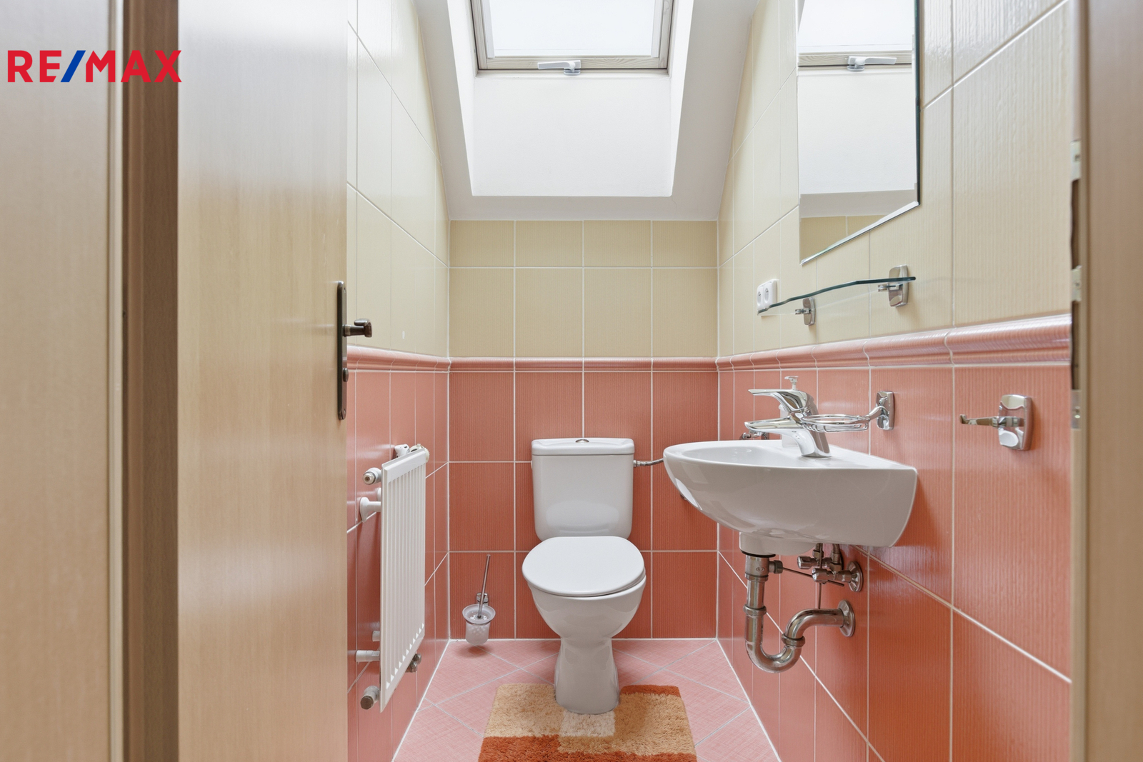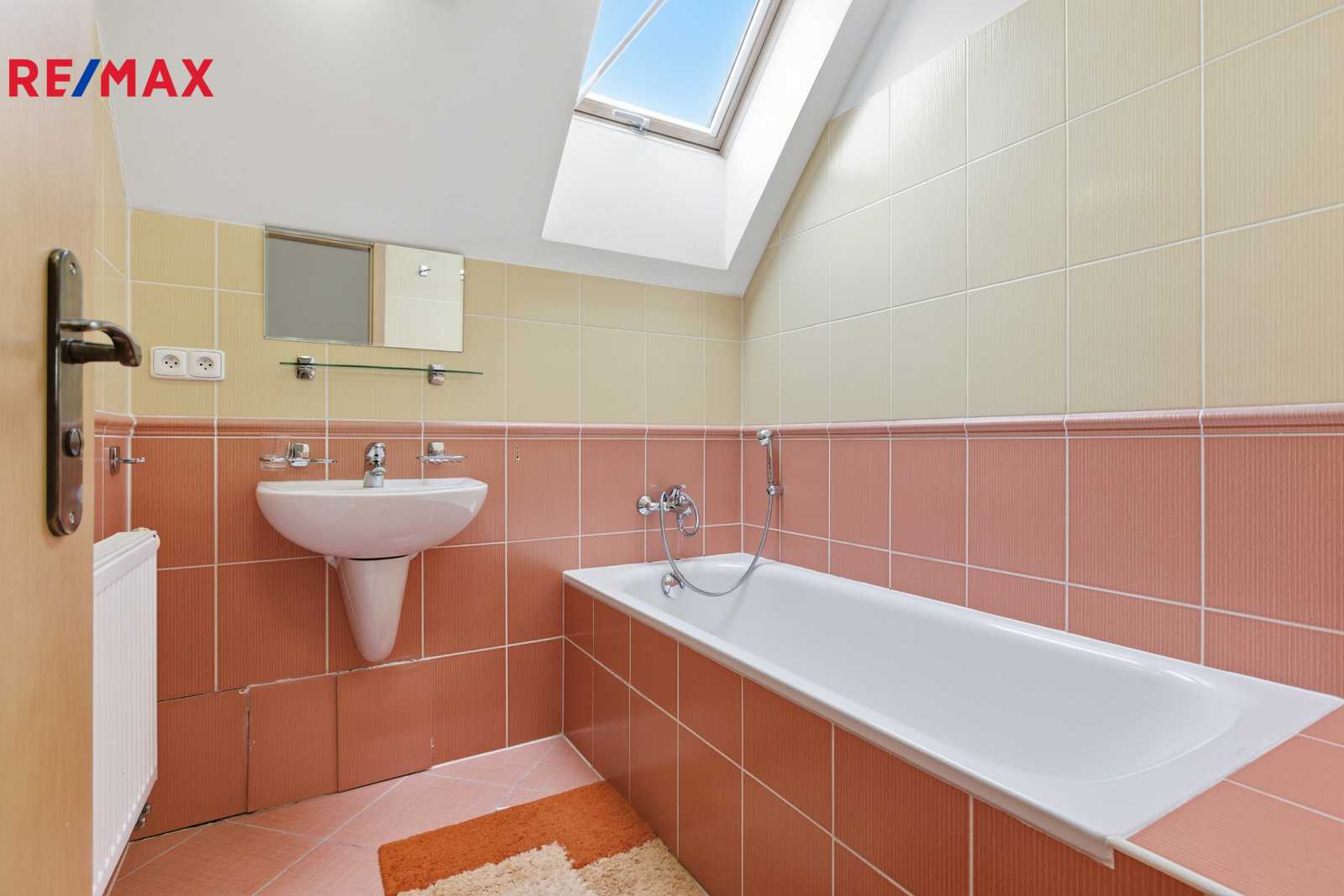 V patře se nachází dvě útulné ložnice. Koupelna s vanou a samostatné WC.
