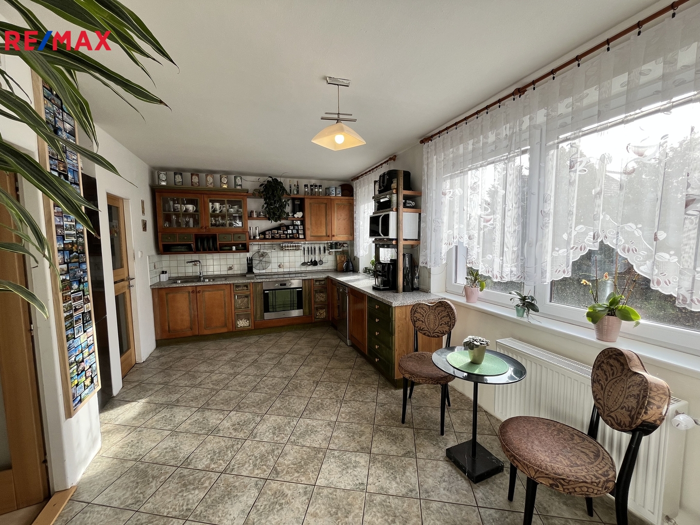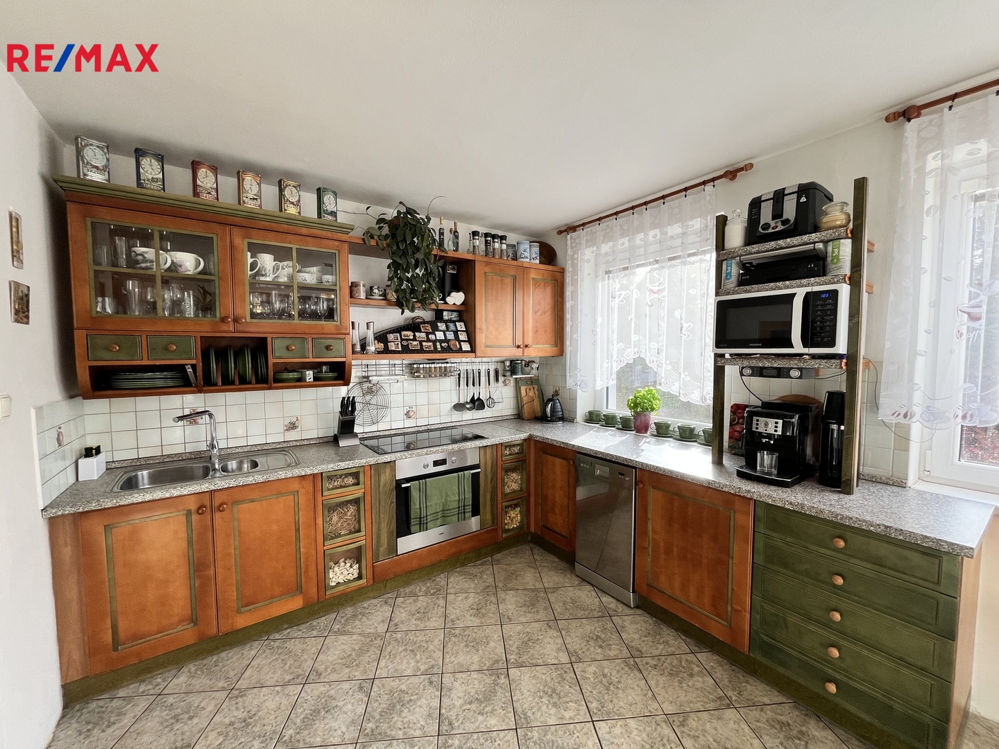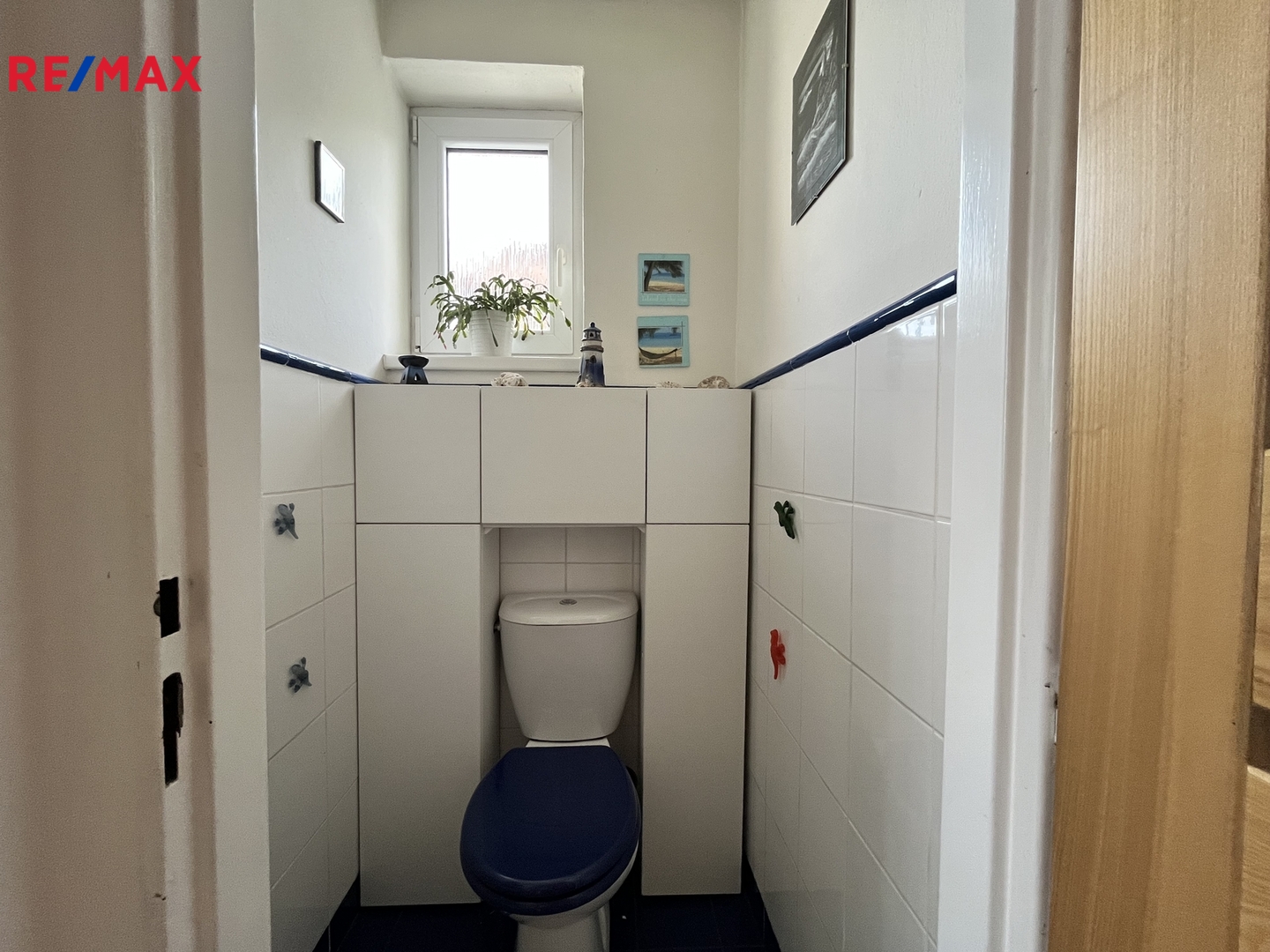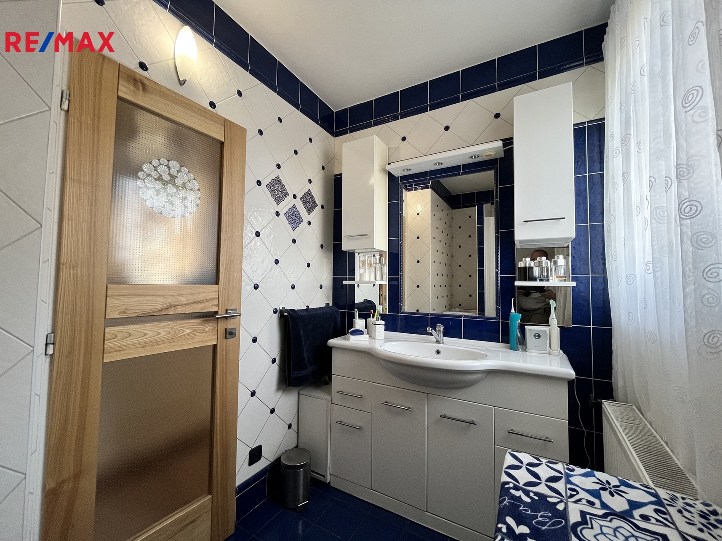 Dům tvoří dvě nadzemní podlaží a prostorný sklep s garáží. V přízemí najdete světlý obývací pokoj, kuchyň se spíží, koupelnu se sprchovým koutem a samostatné WC. V patře se nachází tři pokoje a druhá koupelna s vanou a WC. Ve sklepě je prostorná garáž s dílnou, kotel, bojler a velké množství úložného prostoru. Ze sklepa se dostanete dveřmi na zahradu.
