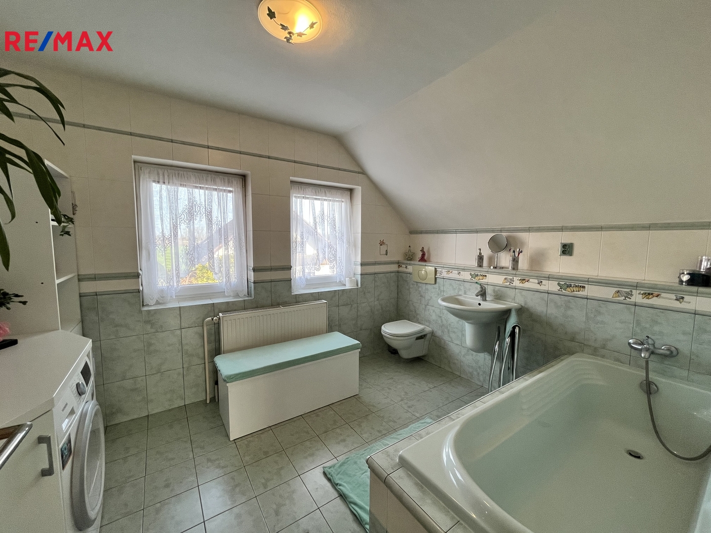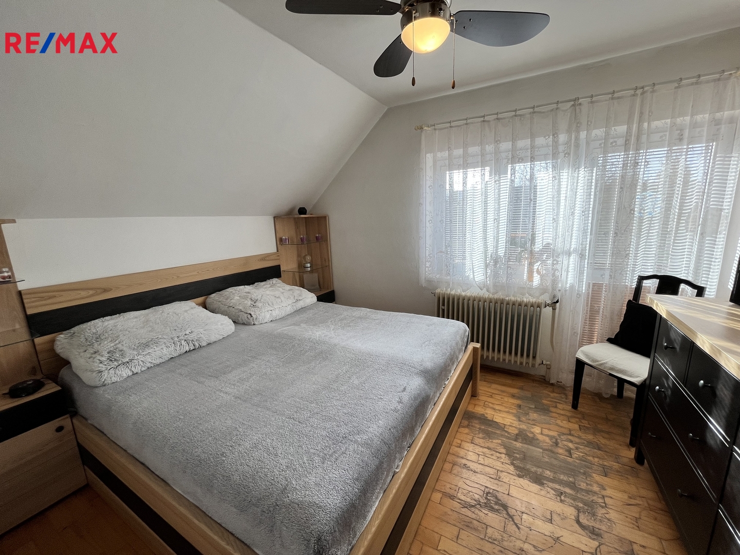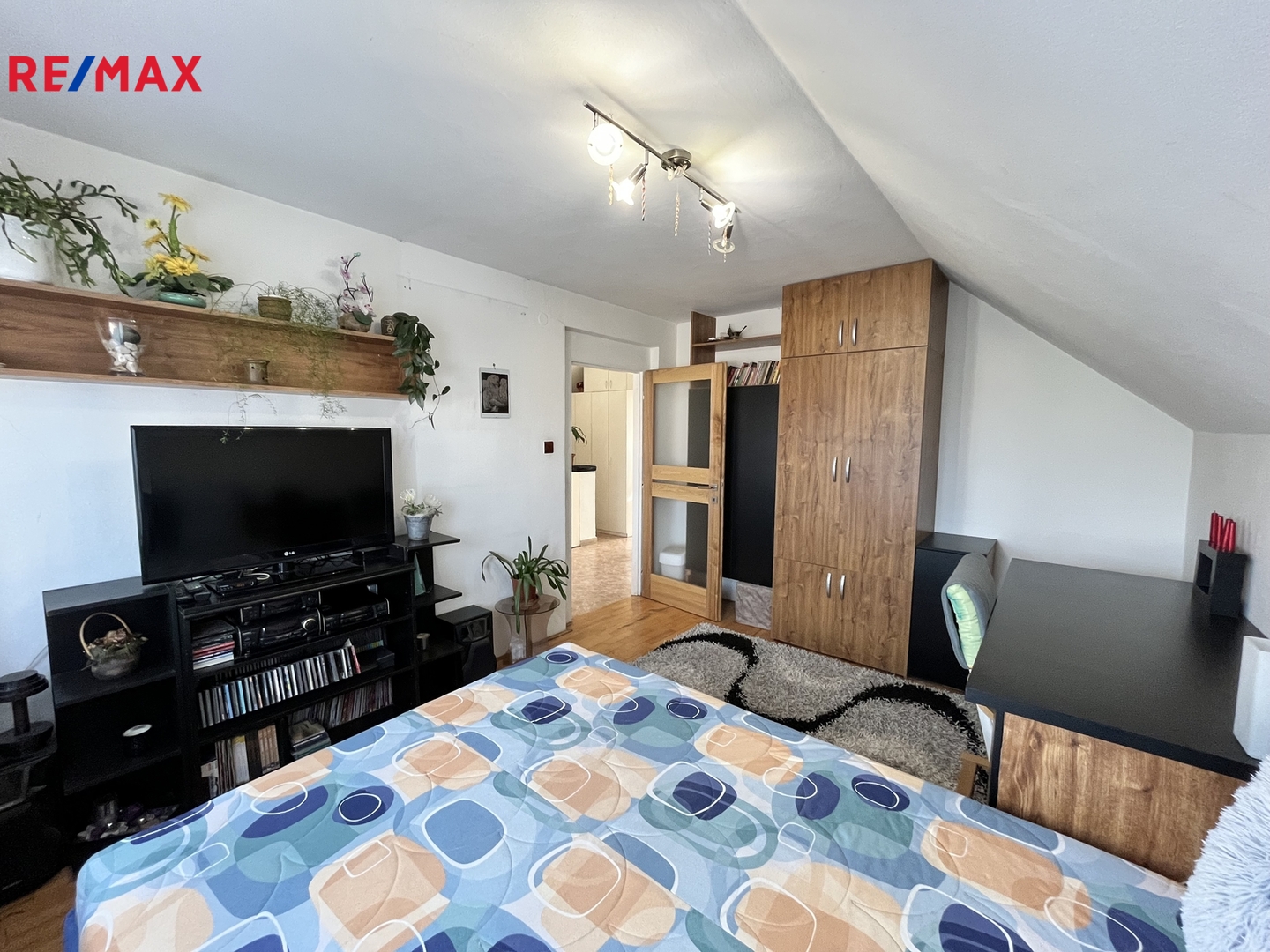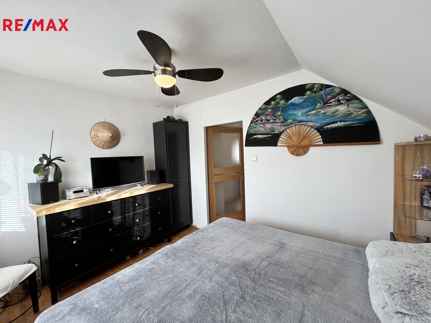 Dům tvoří dvě nadzemní podlaží a prostorný sklep s garáží. V přízemí najdete světlý obývací pokoj, kuchyň se spíží, koupelnu se sprchovým koutem a samostatné WC. V patře se nachází tři pokoje a druhá koupelna s vanou a WC. Ve sklepě je prostorná garáž s dílnou, kotel, bojler a velké množství úložného prostoru. Ze sklepa se dostanete dveřmi na zahradu.