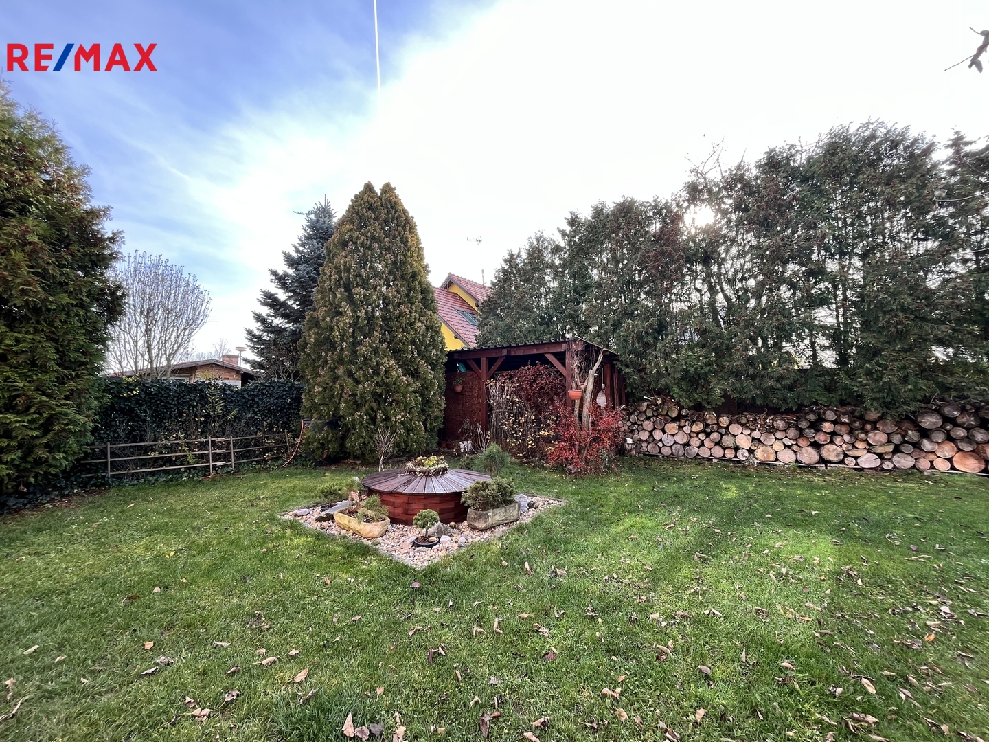 Na pozemku najdete přístřešek pro dvě auta, altánek, terasu, která je přístupná z obývacího pokoje a směřuje na západ a udržovanou zahradu s dostatkem soukromí.