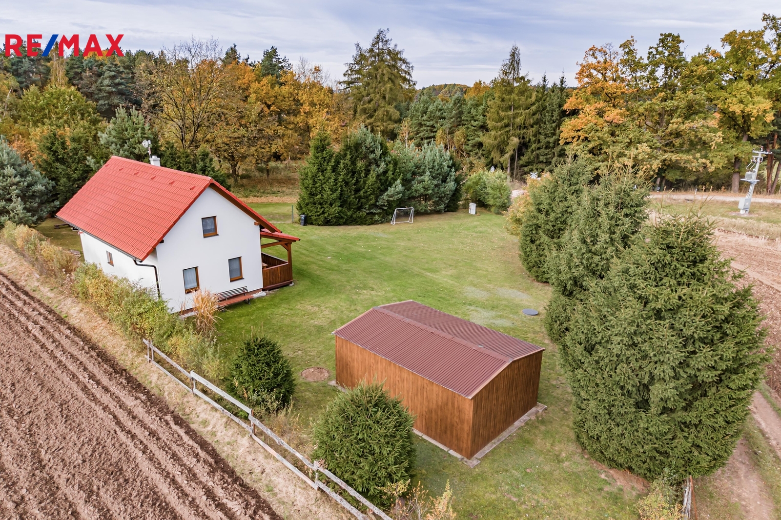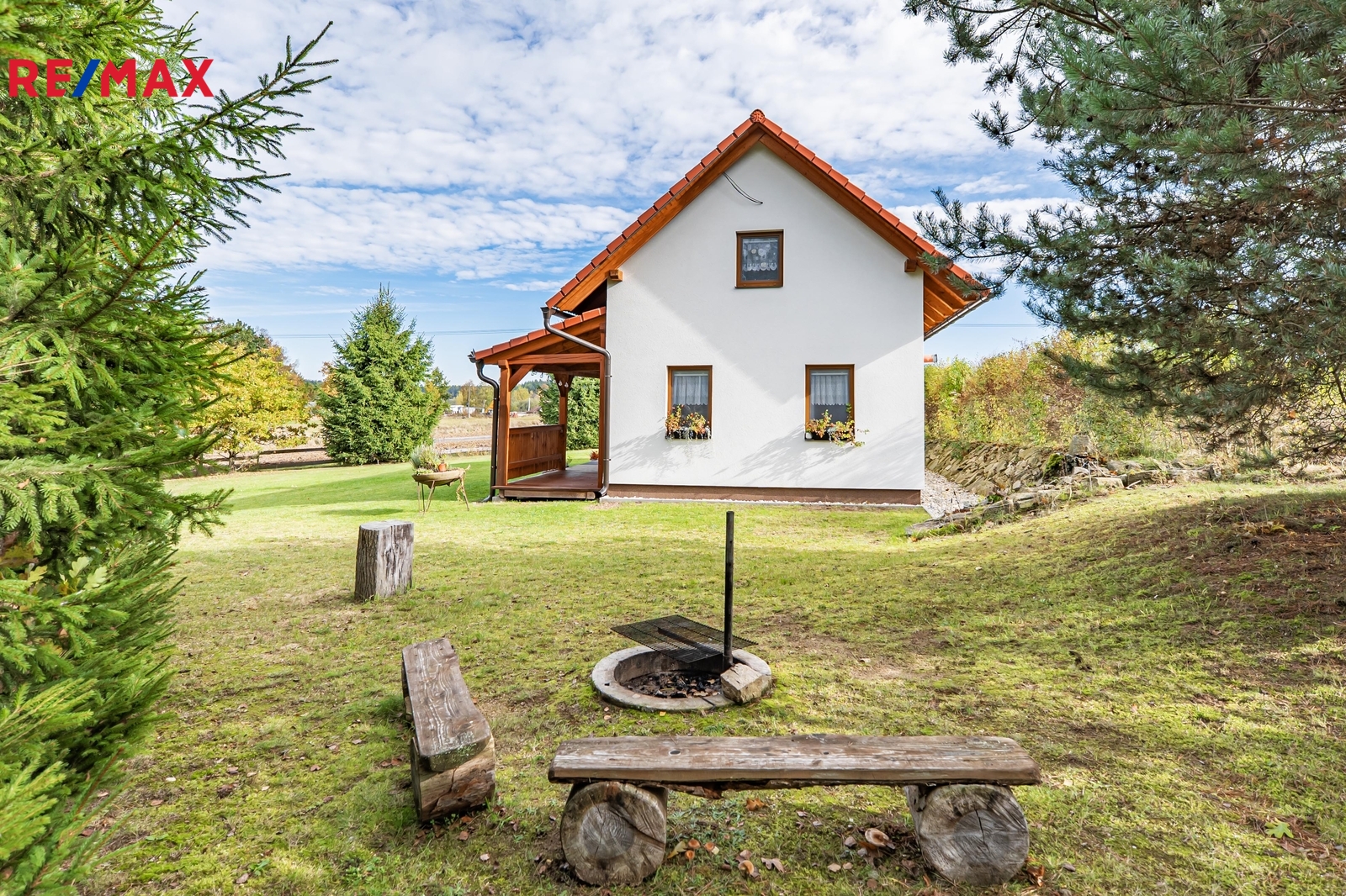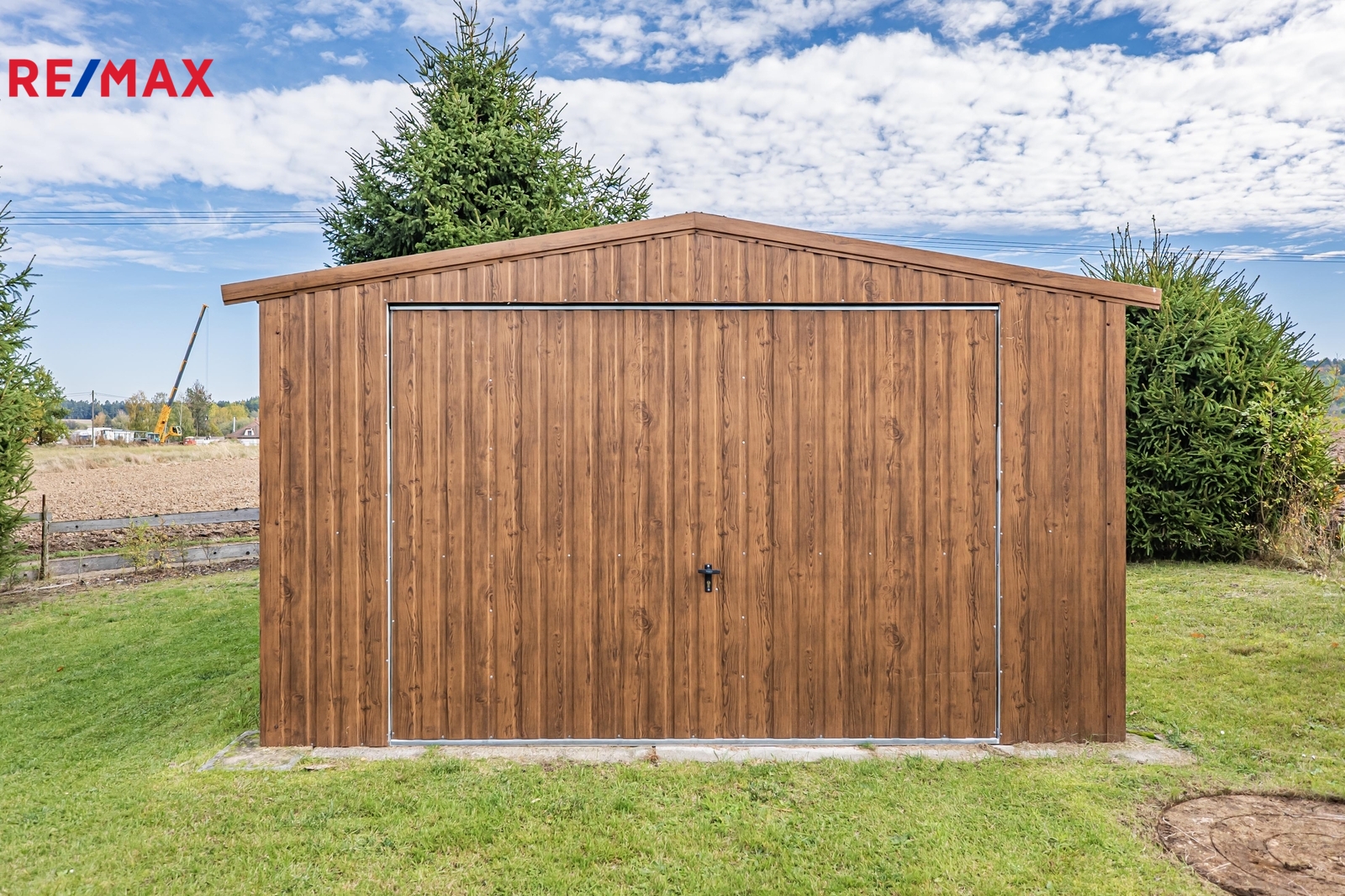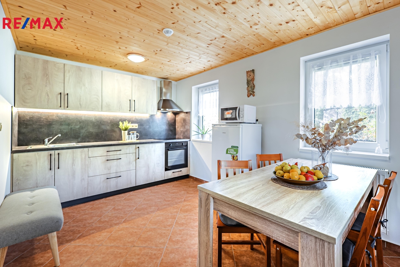 A pak je tu veranda – místo, které si zamilujete. Ideální na ranní kávu, večerní víno nebo prostě jen chvilku, kdy necháte svět běžet dál. Na zahradě najdete i ohniště, kde si můžete opéct buřty s přáteli, poslouchat cvrčky a dívat se do plamenů. K domu patří ještě elektrifikovaná garáž, kolna na dřevo a prostorný pozemek s dostatkem místa pro odpočinek i zahradničení.