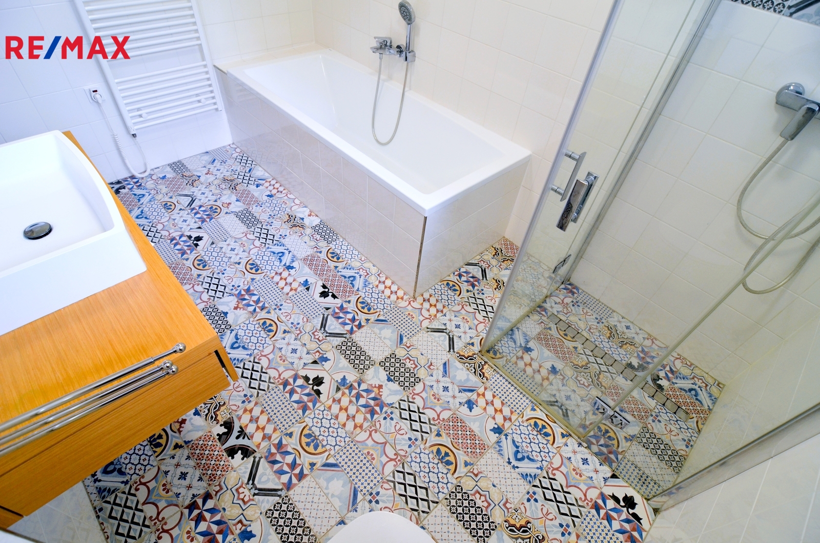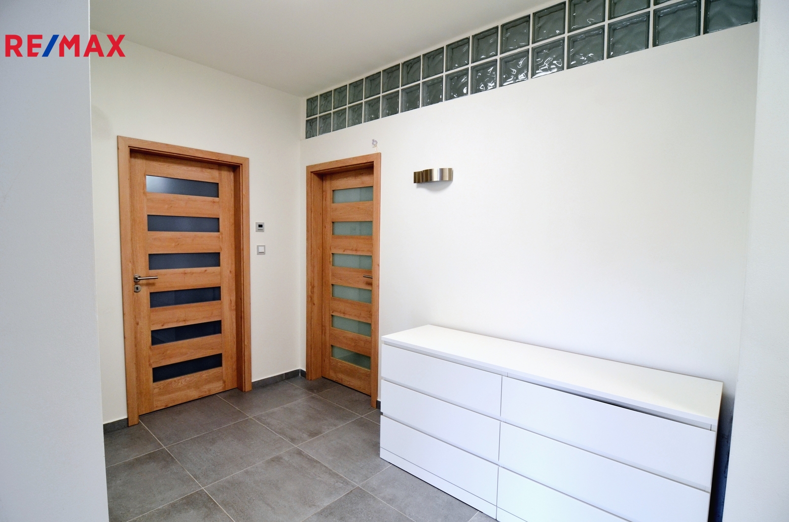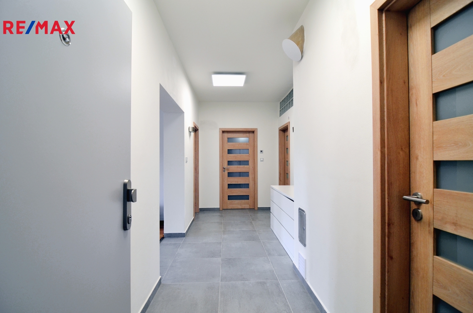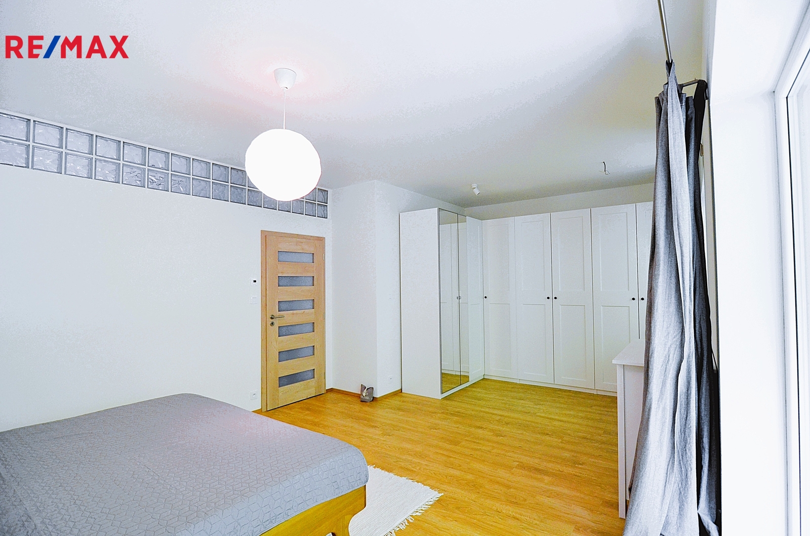 Byt se skládá ze světlého obývacího pokoje (38,4 m2) s kuchyňským koutem s mnoha okny na dvě světové strany a s výstupem na balkón o velikosti 11,5 m2. Dále z opravdu prostorné ložnice o velikosti 25,8 m2, s výstupem na druhý balkón o velikosti 5 m2. Tento pokoj lze v případě potřeby snadno přestavět vybudováním jedné příčky a přidáním dveří a vzniknou tak např. dva dětské pokoje (viz přiložené půdorysy bytu) Dále je v bytě další pokoj (17,1 m2). Ložnice jsou orientované na východ, směrem do zeleného zalesněného svahu, což poskytuje v této části bytu klid na spaní a v létě příjemný chládek. Prostorná světlá koupelna (8,1 m2) s přímým denním osvětlením je vybavena vanou, umyvadlem s koupelnovou skříňkou, WC ale také sprchovým koutem. V technické místnosti (6,4 m2) je další WC s umyvadlem a bidetovou sprškou a také elektrický bojler, pračka a sušička. Z prostorné vstupní haly je vstup do všech místností v bytě. Je zde i možnost připojení krbu nebo krbových kamen. Samotný vstup do bytu je jištěn bezpečnostními dveřmi. Na podlahách je kvalitní dřevěná podlaha z masivu a velkoformátová dlažba, v koupelně pak působivá dlažba v patchwork designu. Dveře v bytě jsou dřevěné, částečně prosklené v obložkových zárubních. Okna jsou bílá, plastová.