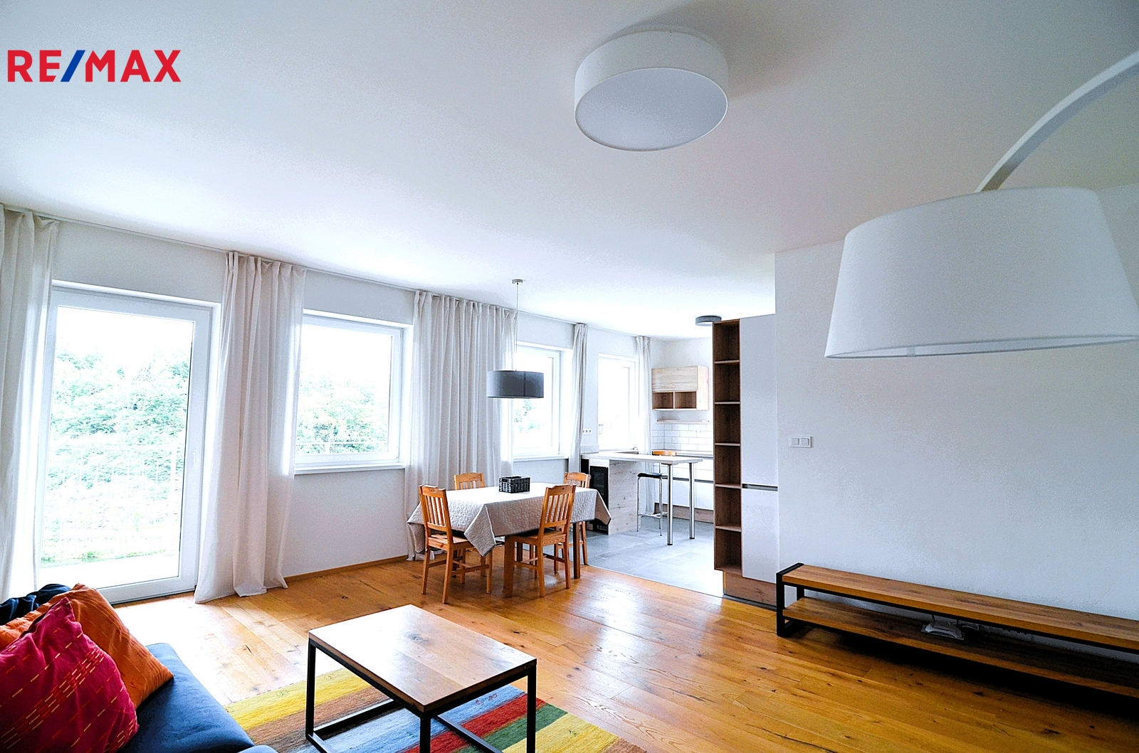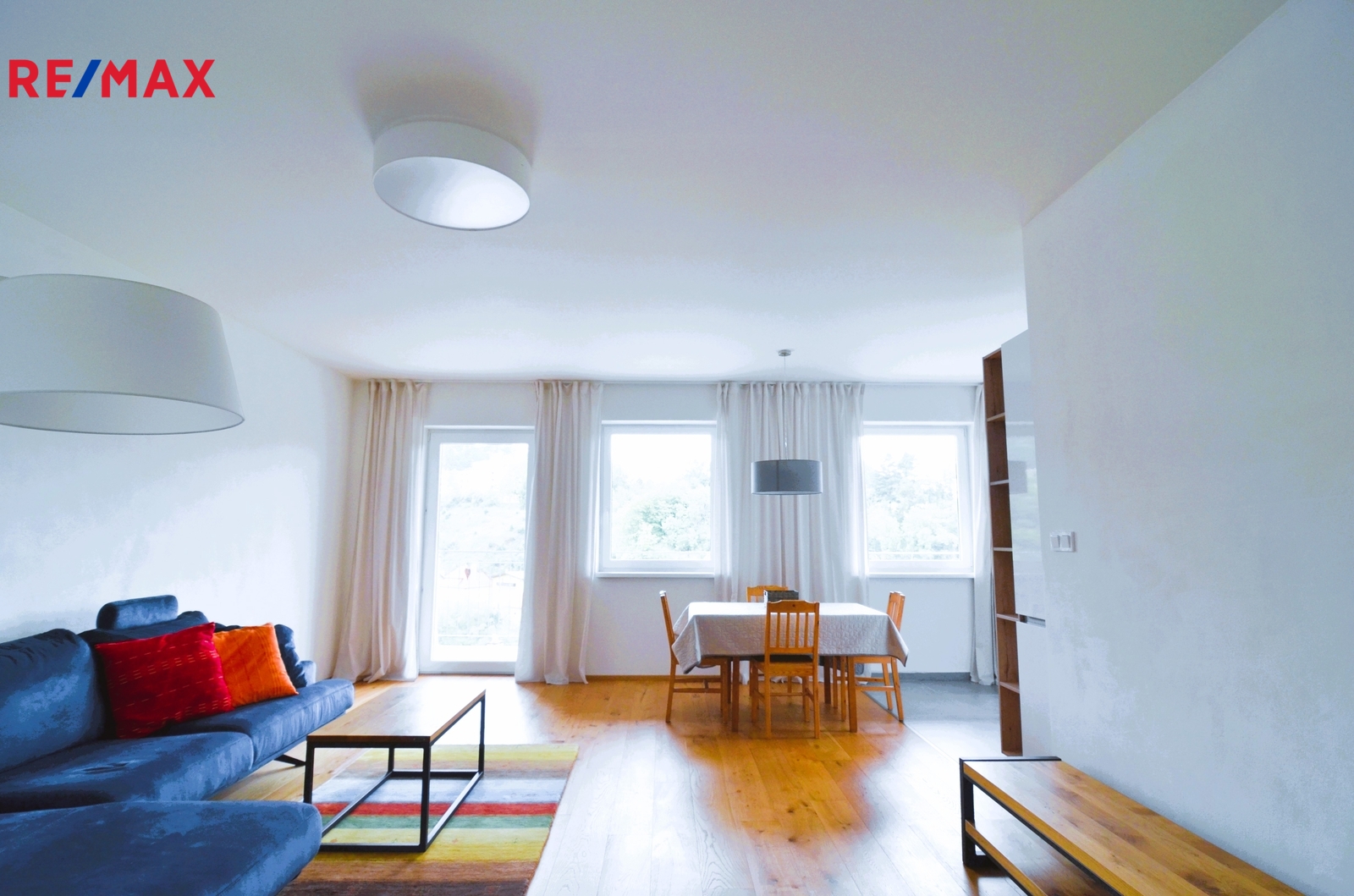 Nabízíme ke koupi krásný, prostorný byt s velkoryse pojatým, prostorným, vzdušným obývacím pokojem (38 m2). Byt je vzdálený pouhých 20 minut pěší chůze od historického centra Českého Krumlova, s nádherným výhledem na řeku Vltavu a historickou krytou dřevěnou lávku u jezu Rechle.
