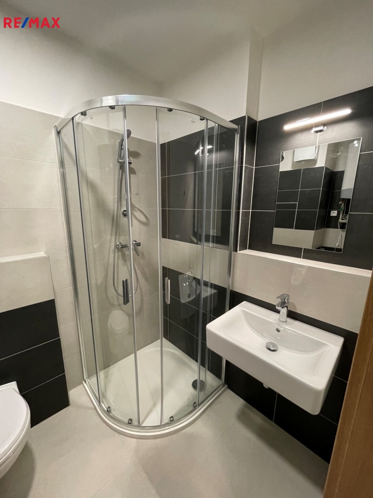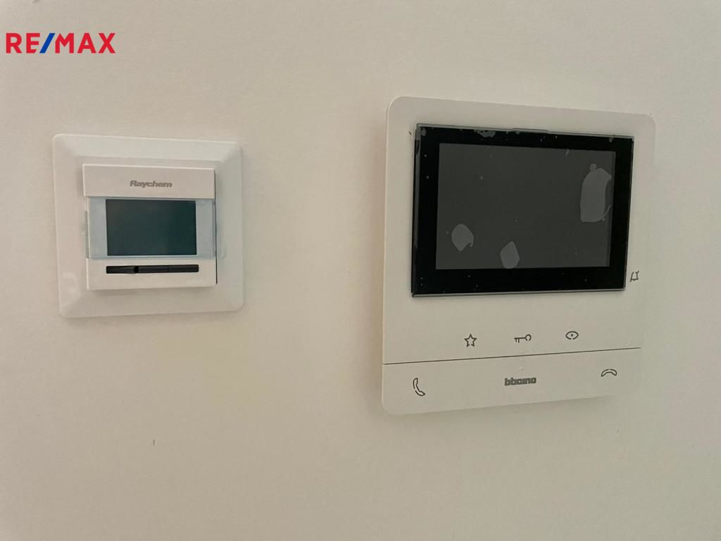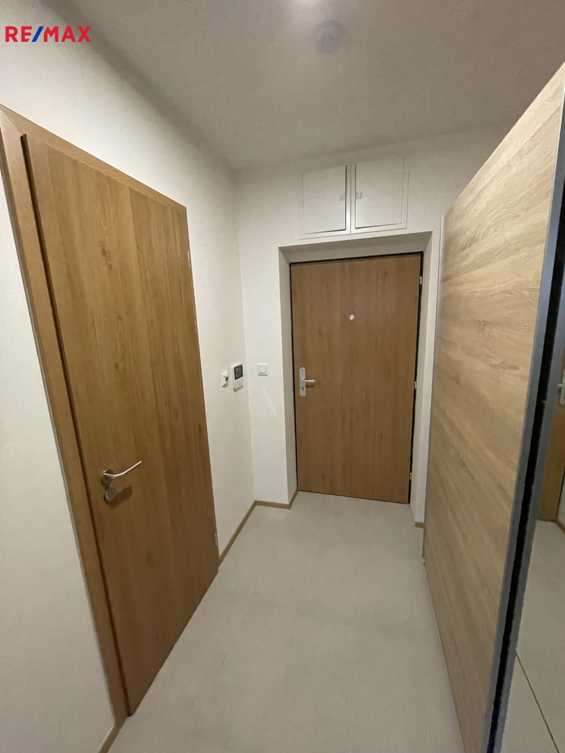 Součástí vybavení je moderní kuchyňská linka se spotřebiči – lednice, myčka, varná deska, elektrická trouba, digestoř a osvětlení. V chodbě se nachází velká šatní skříň a praktická věšáková stěna s botníkem. Komfort bydlení zajišťuje klimatizace a elektrické podlahové vytápění. K bytu patří také prostorný balkon (5,2 m²), ideální pro odpočinek po práci. V domě je k dispozici kolárna a kočárkárna.