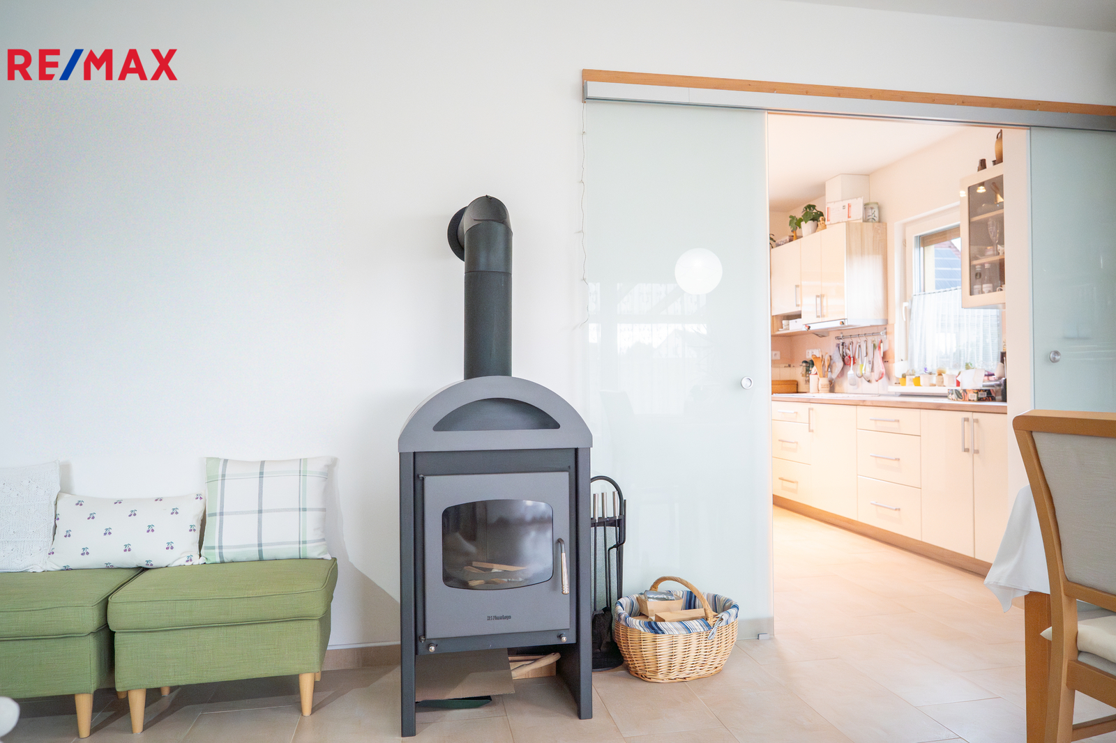 Vytápění je zajištěno podlahovým topením v kombinaci s krbovými kamny na dřevo, které vytvářejí příjemnou atmosféru domova a přispívají k nízkým provozním nákladům. O ohřev teplé vody se stará elektrický bojler o objemu 120 litrů. Samozřejmostí je klimatizace, energeticky úsporné řešení domu, plastová okna s trojskly a napojení na kanalizaci.