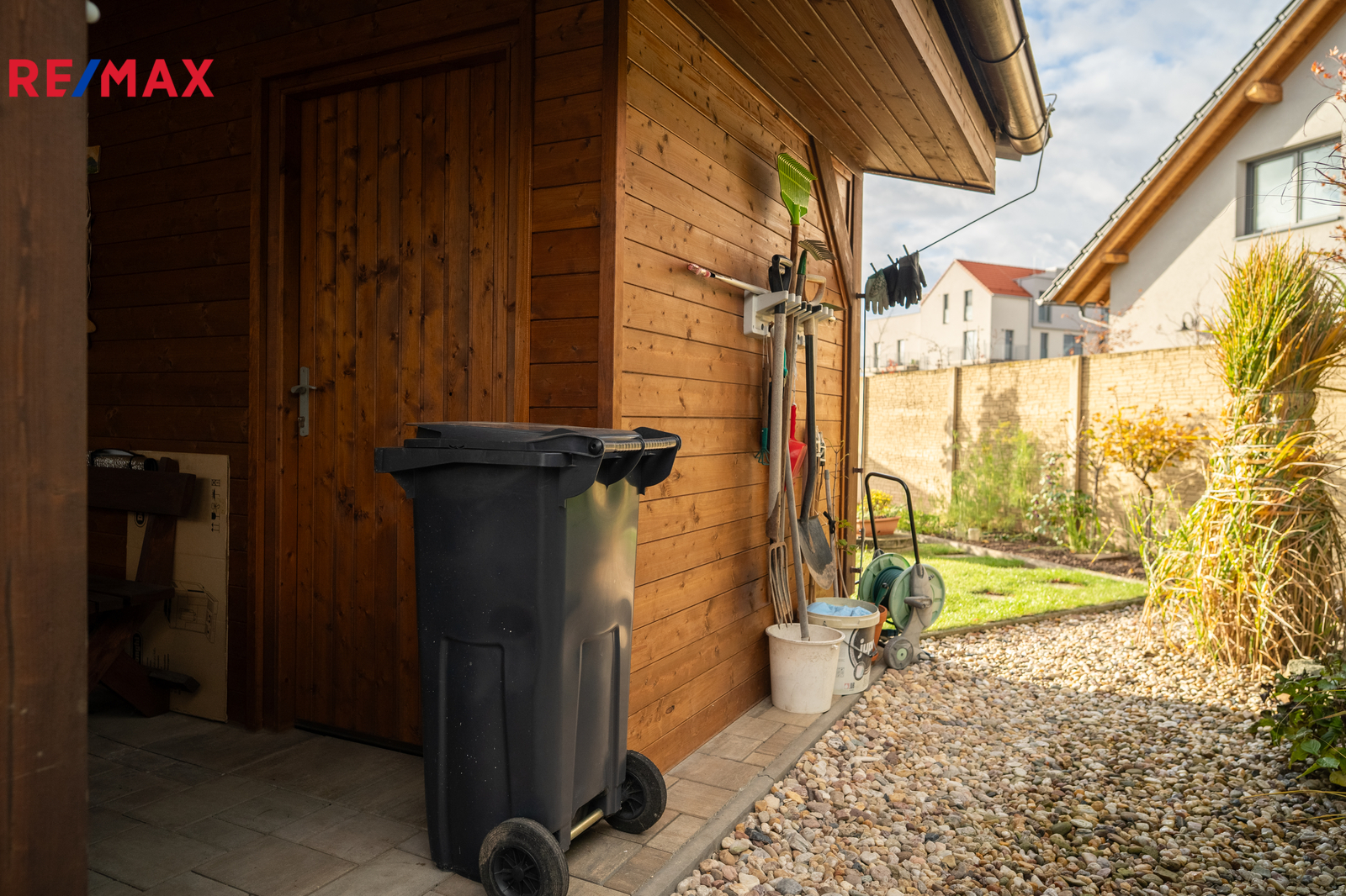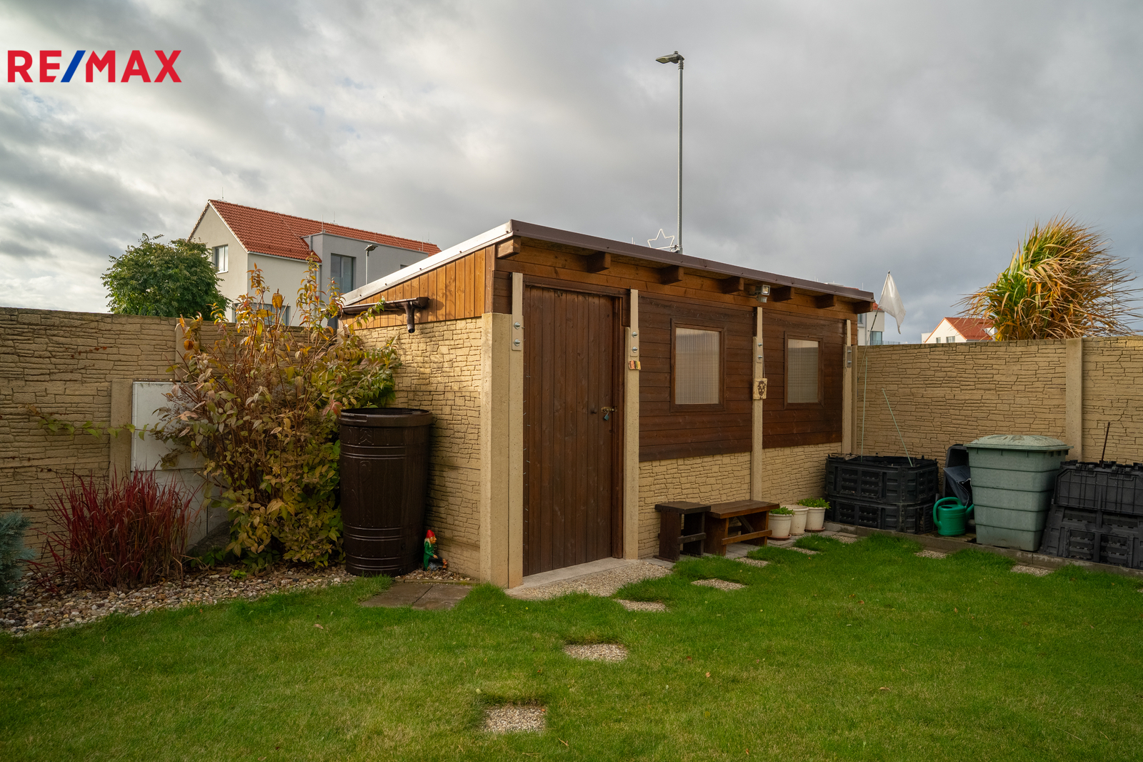 Dešťová voda je chytře využívána díky retenční nádrži s čerpadlem, kterou lze používat pro závlahu zahrady. Dům je tak nejen komfortní, ale i ekonomický a šetrný k životnímu prostředí.