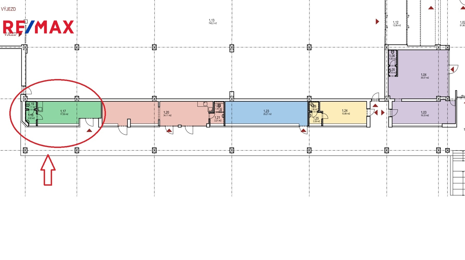 - prodejna 17,55 m2