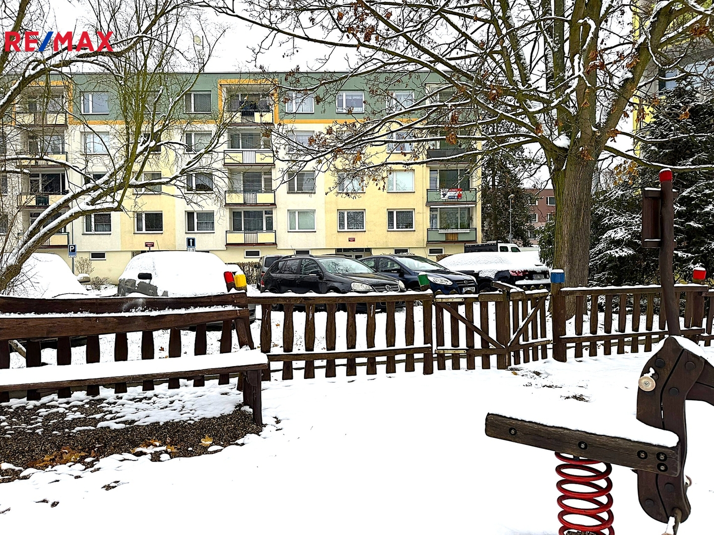 Velkým benefitem je balkon s výhledem přímo na dětské hřiště – rodiče tak mohou mít své děti doslova „na očích“, aniž by opustili domov. To je něco, co se dnes hledá jen těžko.